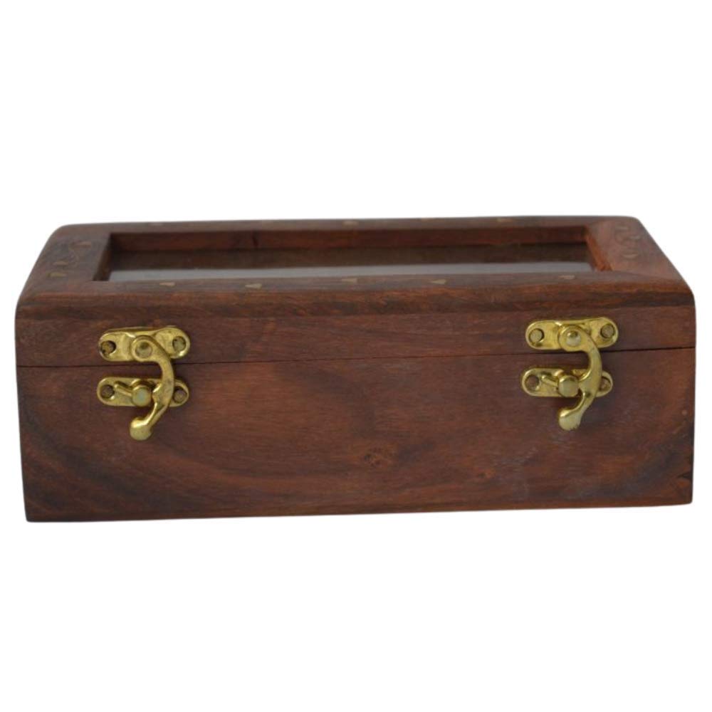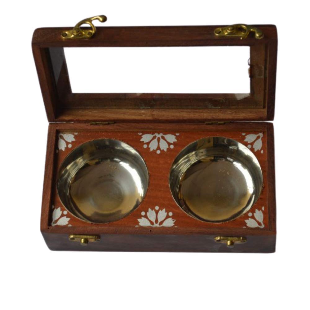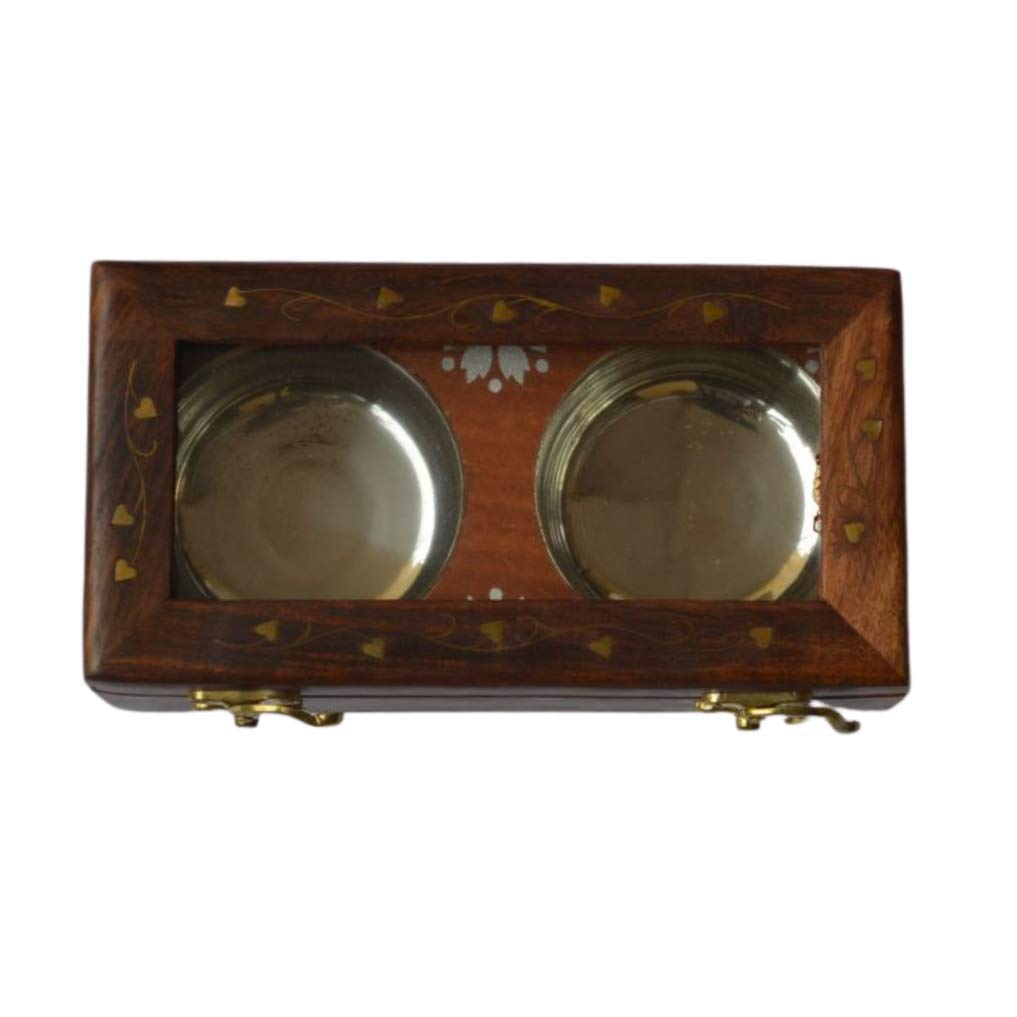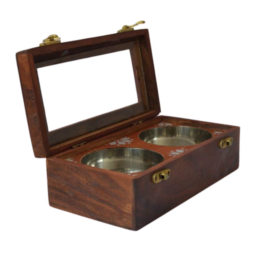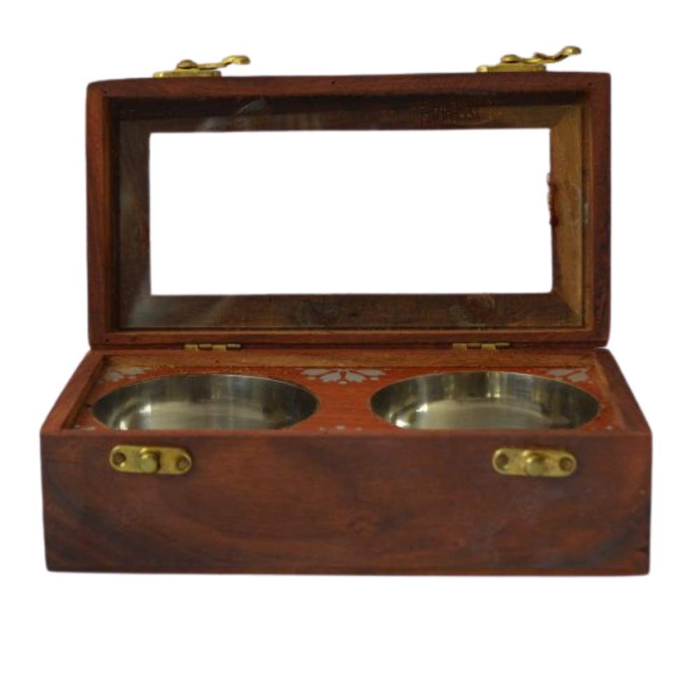 KHURJA POTTERY Sheesham Wooden Table Top Masala Box Containers Jars & Wooden Masala Dabba for Kitchen Masala Dani Wooden Spice Storage Box Set for Kitchen with 2 Steel Container Brown