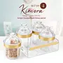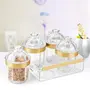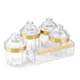 Trueware Kimora Set of 4 beautiful tableware set with tray which consist of airtight containers ideal for serving and storing dry fruits and other dry snacks. These containers are comes with tray for serving and regular use. The specially designed lid makes containers airtight and keeps contents fresh & crisp. This Designer Serving Container set will enhance your dining table and serve in style.It is wonderful gift for the festive season. It is spacious and wide-mouth for filling up cookiesdry fruitscandieschocolates and sweetsetc.