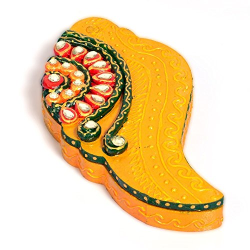 This colourful handcrafted shankh shaped kundan container is made up of wood. The body of the container is decorated with kundan and flawless colors on the lid which could be closed after use. It is also an ideal gift for your friends and relatives. The gift piece has been prepared by the master artisans of jaipur.