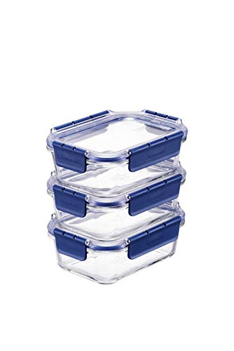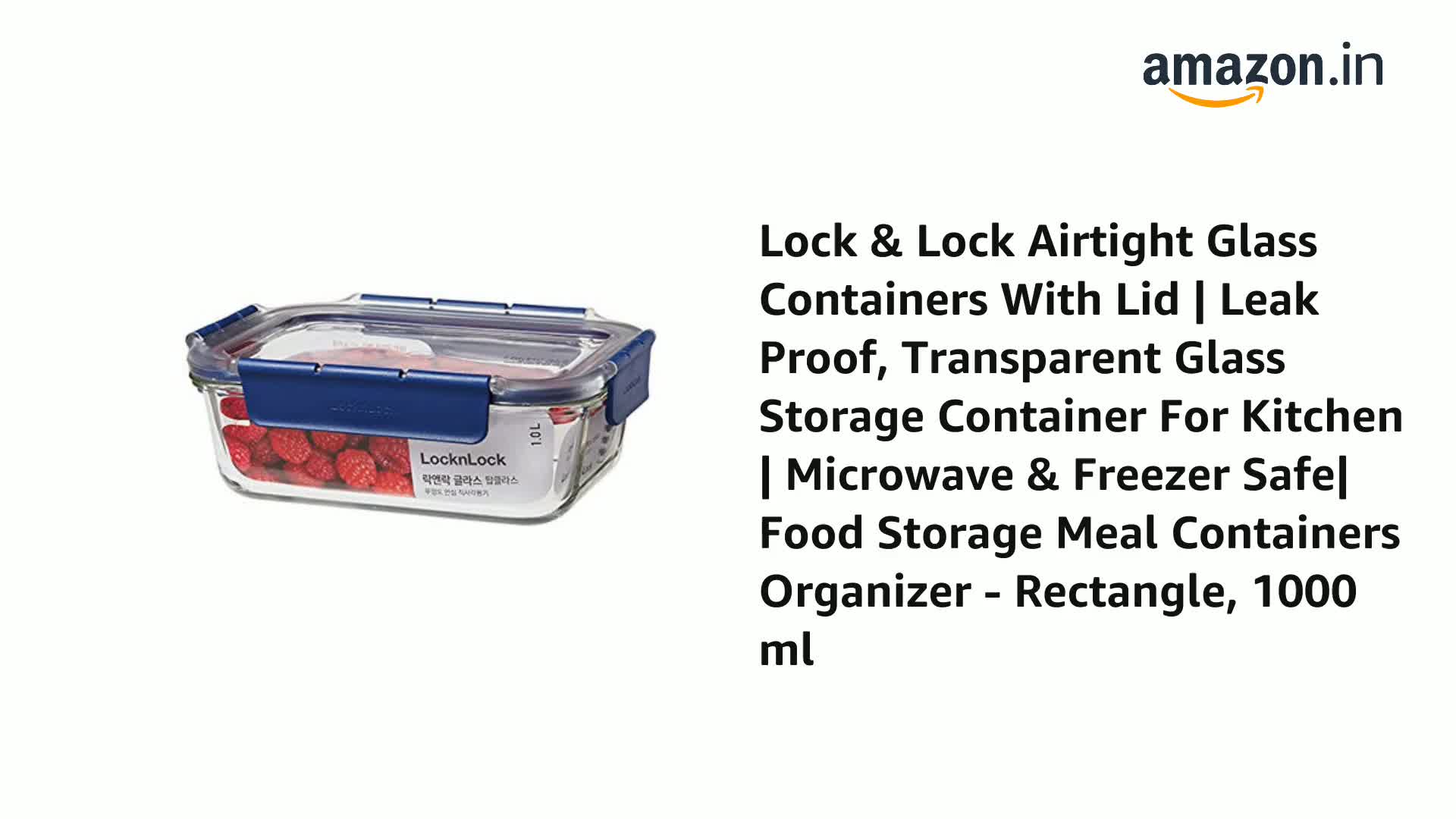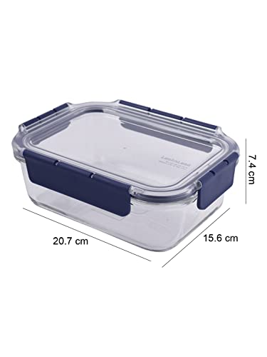 Lock & Lock Rectangular Leak Proof Heat Resistant Glass Food Storage Container, 1 Litre, 1 Piece, Transparent