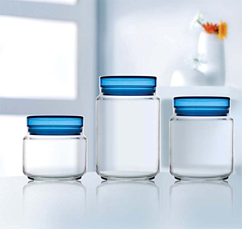 Luminarc Glass Jar with Lid - 0.5 L 0.75 L 1 L 3 Pieces Blue