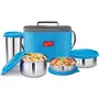 Introducing Steel Softline Tiffin series from the house of Milton. Delicious Combo is an ideal choice to carry home-made food in 100% leak-proof stainless steel containers. It comes with 3 stainless steel round containers along with a stainless steel tumbler. The outer jacket is made of finer quality and trendy fabric and high grade insulation that keeps contents hot and fresh for long hours. The stylish design and select colours of jackets make it a perfect meal companion.
