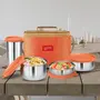 Introducing Steel Softline Tiffin series from the house of Milton. Delicious Combo is an ideal choice to carry home-made food in 100% leak-proof stainless steel containers. It comes with 3 stainless steel round containers along with a stainless steel tumbler. The outer jacket is made of finer quality and trendy fabric and high grade insulation that keeps contents hot and fresh for long hours. The stylish design and select colours of jackets make it a perfect meal companion.