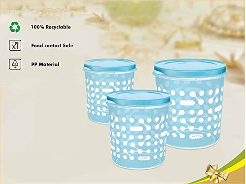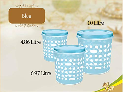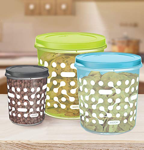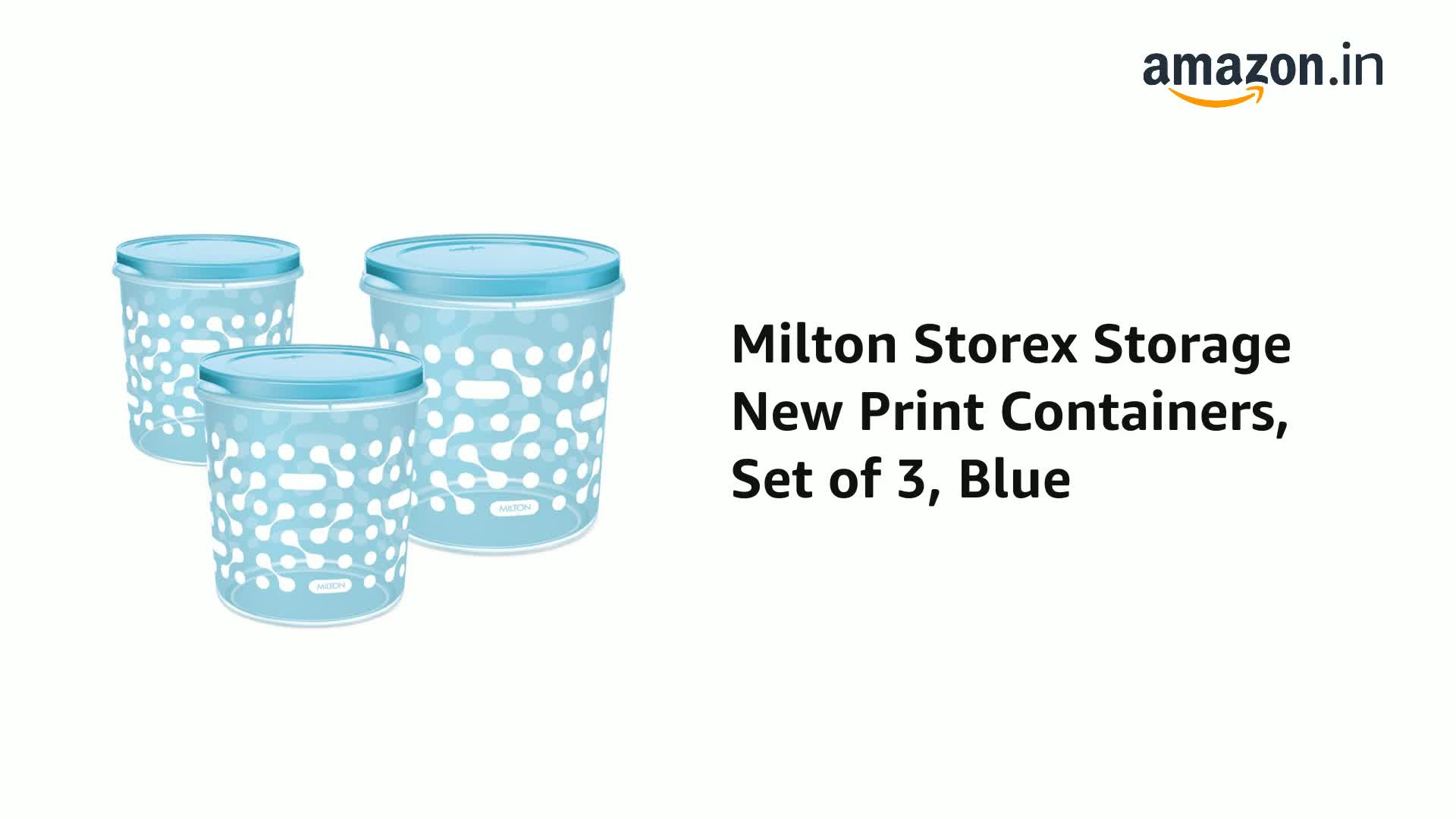 These MILTON Polypropylene containers (set of 3) come in a set of 3 with a storage capacity of approx 5 litres 7 litres and 10 litres respectively. Bright modern design print adorns the body and has easy to open lid. The canisters are semi-transparent and you can see what is inside without opening it. Food grade quality make it hygienic for food use