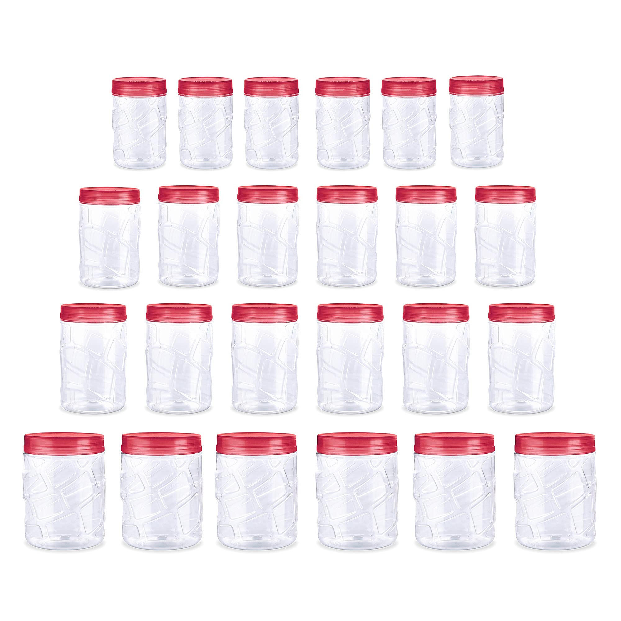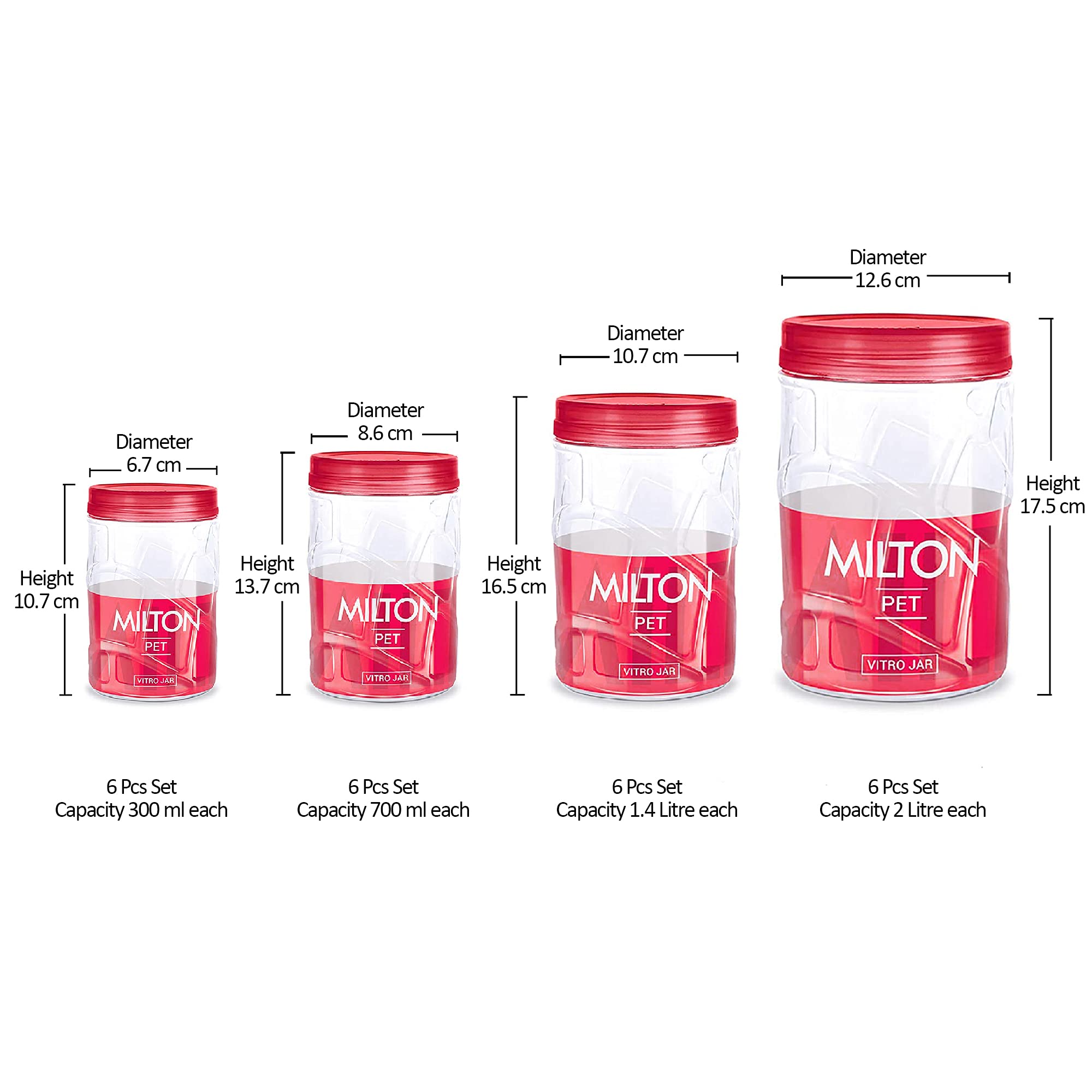 MILTON Vitro Plastic Pet Storage Jar and Container Set of 24 (6 pcs x 270 ml Each 6 pcs x 665 ml Each 6 pcs x 1.24 Ltrs Each 6 pcs x 1.85 Ltrs Each) Red Wine | Food Grade | Air Tight | BPA Free