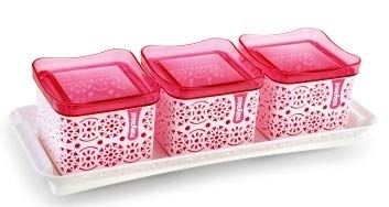 Nayasa Sofia Square containers is multipurpose set of 2346 airtight food storage containers with lids and a serving tray. Having a tea with crispy bites of biscuits or namkeen is something you love to do daily - be it a morning starter or evening snack. Airtight Storage Containers with tray in multi design is perfect for storing essential food ingredients such as Biscuits Dry Fruits Cookies Candies Nuts Snacks chocolates and many more. This Stylish and versatile container is made from 100 percent Food Grade plastic BPA Free and offers great durability. Best for your kitchen this Air tight container will keep the contents fresh for a long time. Ideal Usage is for keeping daily snacks to serve guests and for gifting purpose. Material :- Plastic Package Content :- Set of-2346 Piece Containers (540 ml) with Lid and 1 Piece TrayCare Instructions: :- Keep away from fire.Created By :- BANSAL GROUP