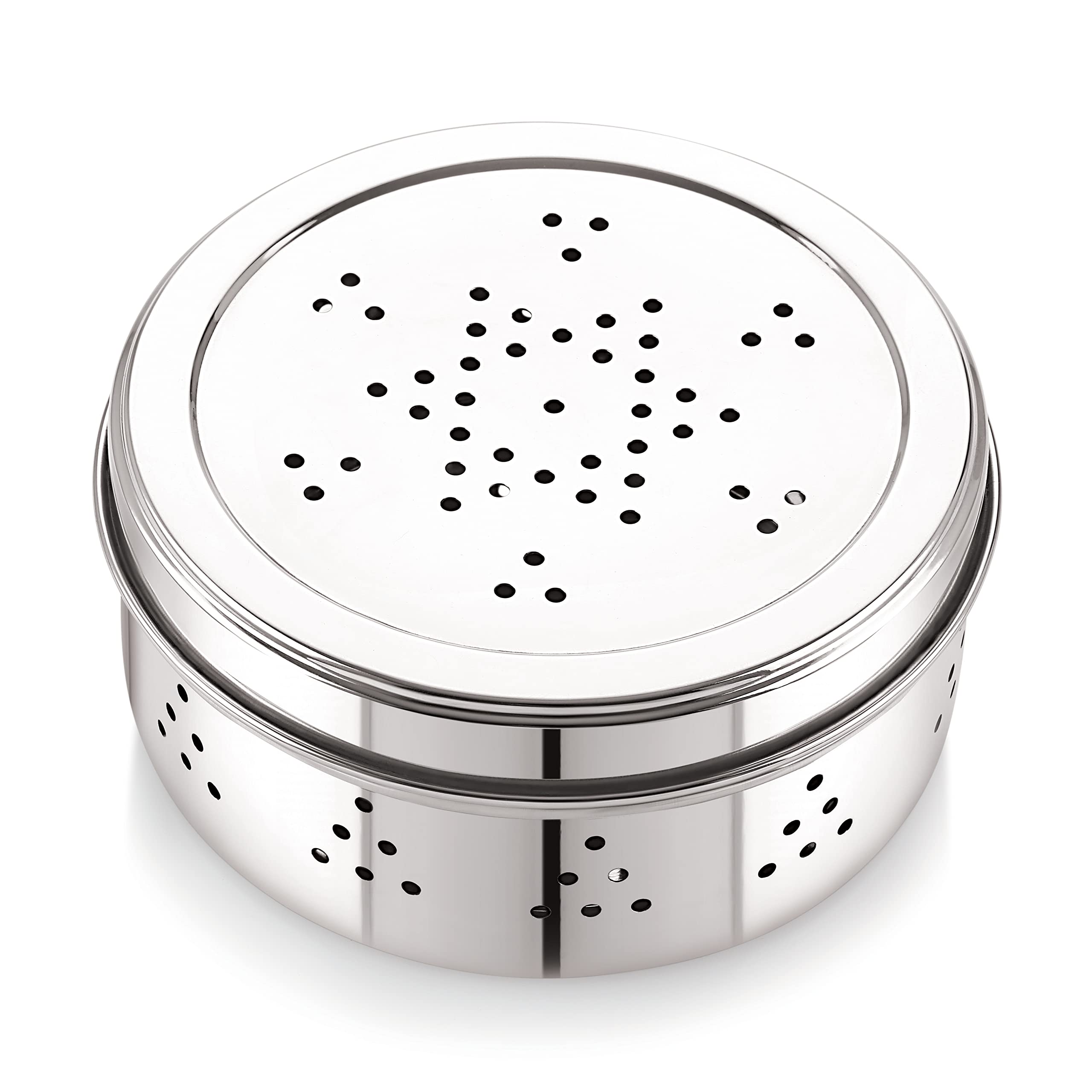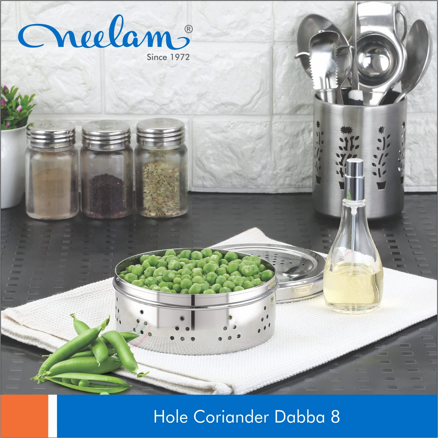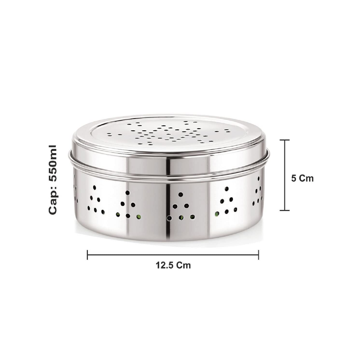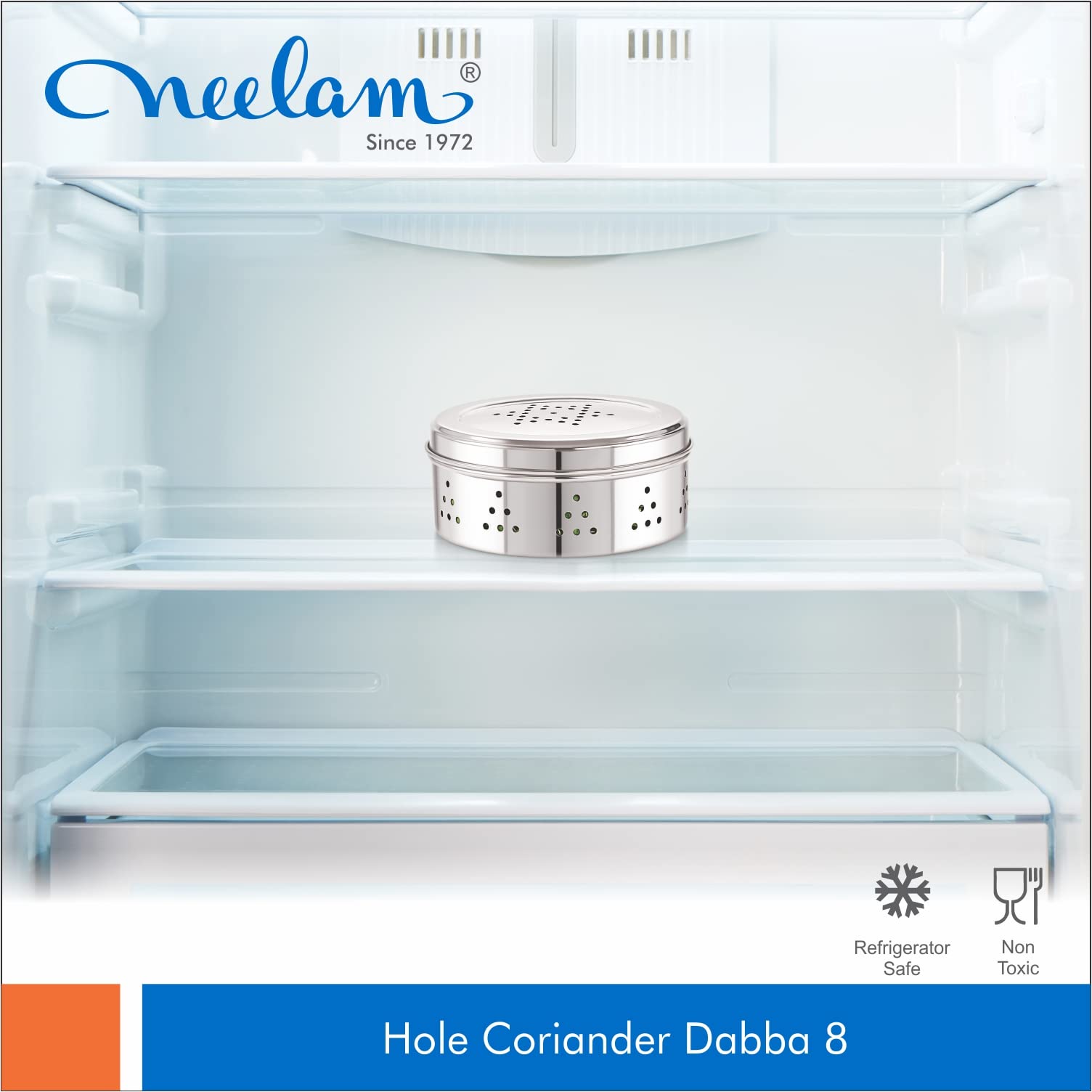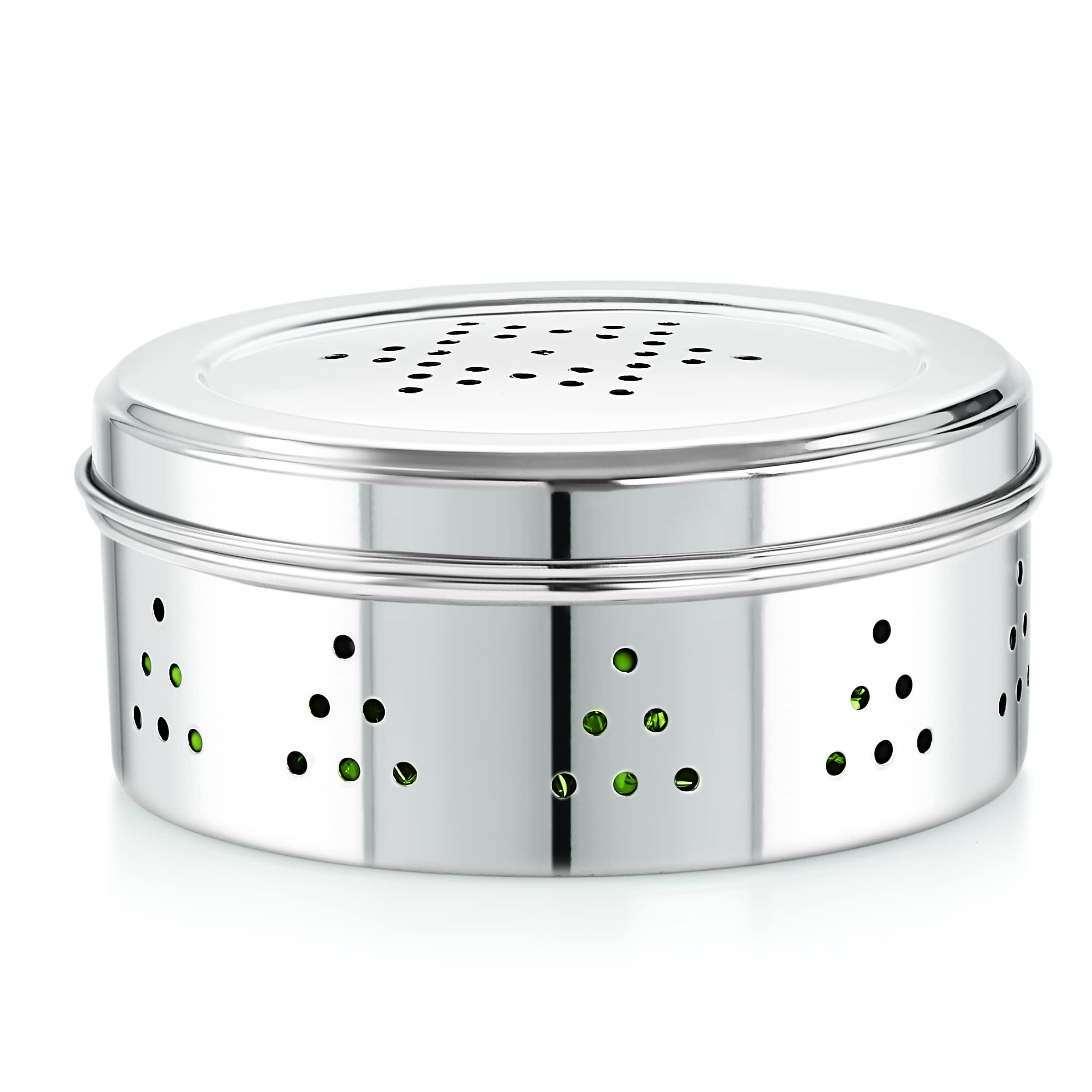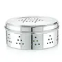 High-Quality Stainless Steel Construction: The Neelam Stainless Steel Coriander Dabbas with Air Ventilation is crafted from premium stainless steel ensuring durability and long-lasting performance while also resisting rust and corrosion for reliable leafy vegetable storage. Air Ventilation: Designed with air vents to preserve freshness and prevent moisture buildup. Size No. 8: Ideal size for storing coriander spices and seasoning with ease. Elegant Silver Finish: Stylish sleek silver finish that enhances your kitchen aesthetic.