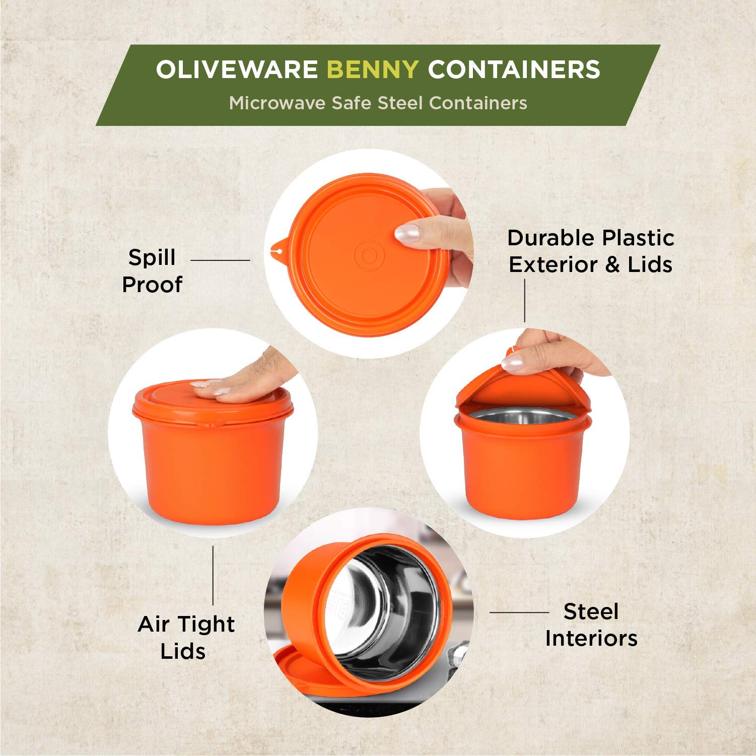 HomeKitchenContainersJars & Containersoliveware Benny Microwave Containers With Bpa Free Airtight Lid Stainless Steel Container Leak Proof Home & Office Use Set Of 2 (600Ml)- Orange Bronze
