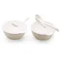 Oliveware Diplomat Serving Bowl Set | 2 Bowls with lid and Serving Spoons | Microwave Safe | Heating & Serving| for Breakfast Lunch Dinner - White