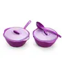 oliveware Diplomat Serving Bowl Set (2000 ML) | 2 Bowls with lid and Serving Spoons | Microwave Safe | for Heating & Serving| for Breakfast Lunch Dinner - Purple Plastic