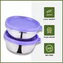 oliveware Elegant Storage Containers 100% Leak Proof & Spill Proof 2 Stainless Steel Containers with BPA free Airtight Lid (250 ml Each) - Voilet