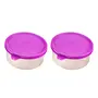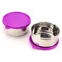 oliveware Magic Storage Containers 100% Leak Proof and Spill Proof 2 Stainless Steel Containers with BPA Free Airtight Lid (450ml Each) - Voilet