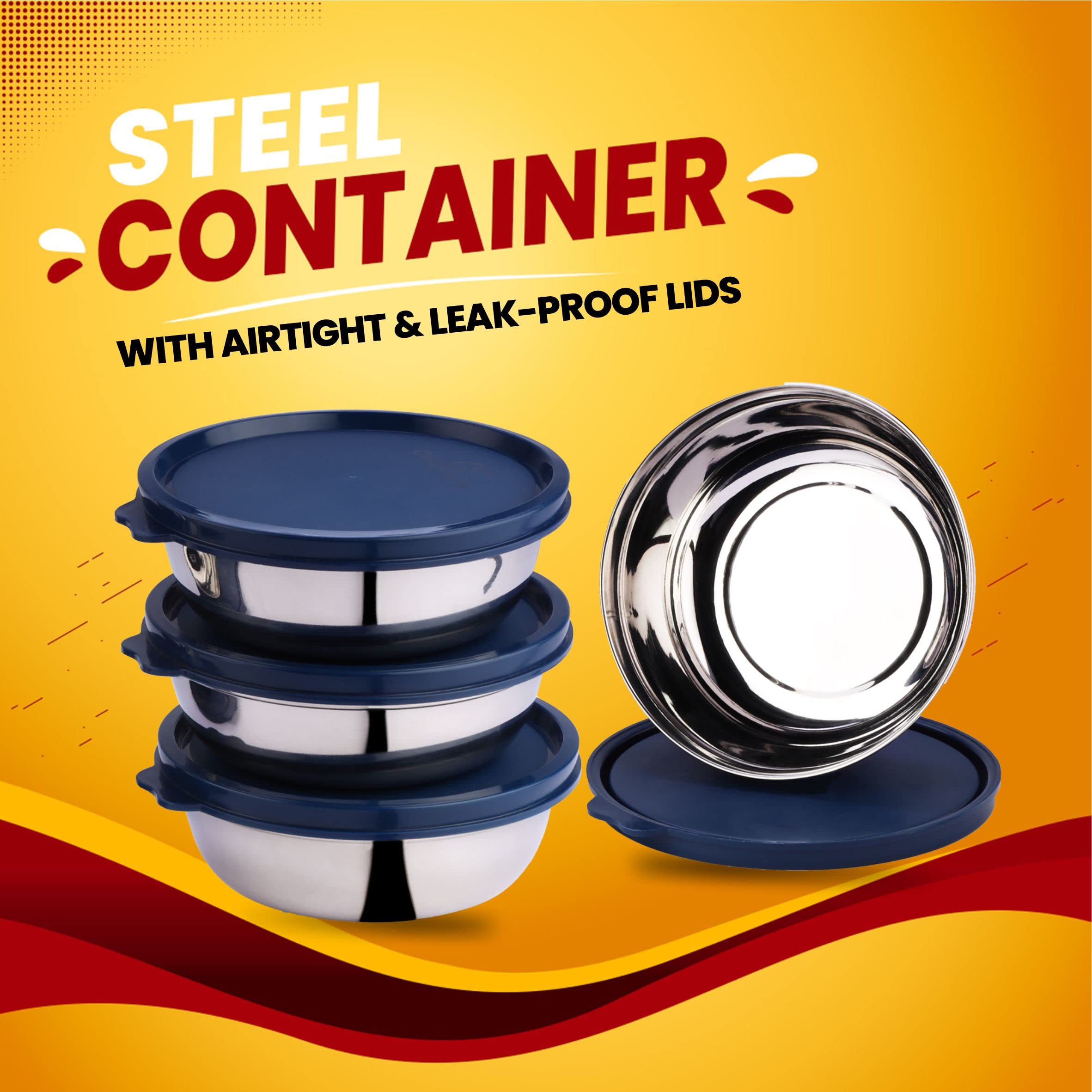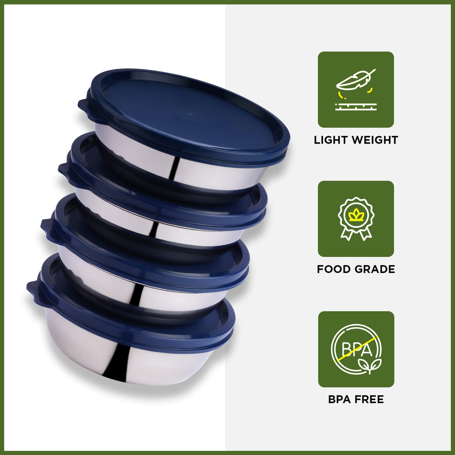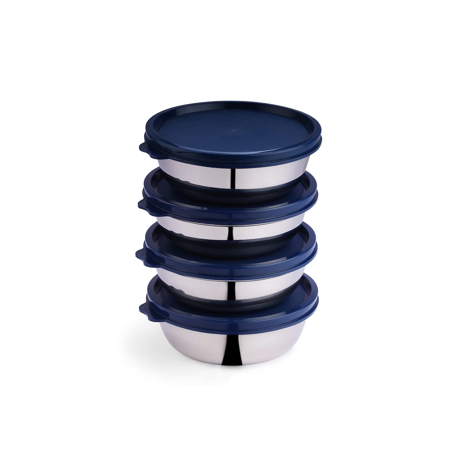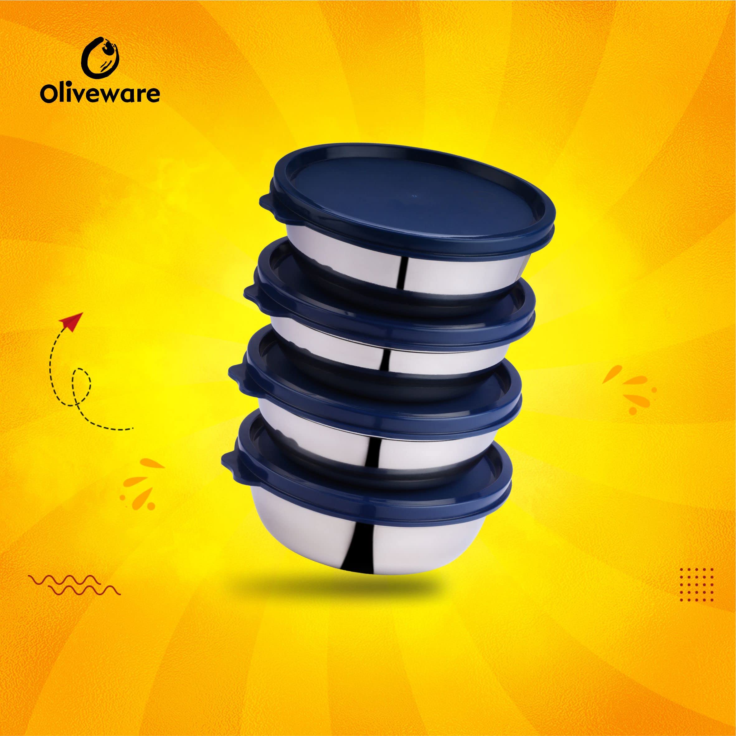 Premium-Quality Microwave Containers: The Oliveware Microwave set of 4 (250 ml) containers are crafted with high-quality stainless steel ensuring long-lasting performance and durability for your microwave cooking and storage needs.