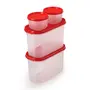 Oliveware Modular Storage Containers BPA Free For Pulses Rice Dal Atta & Flour Set of 4 (2x1800ml 2x180ml) - Red