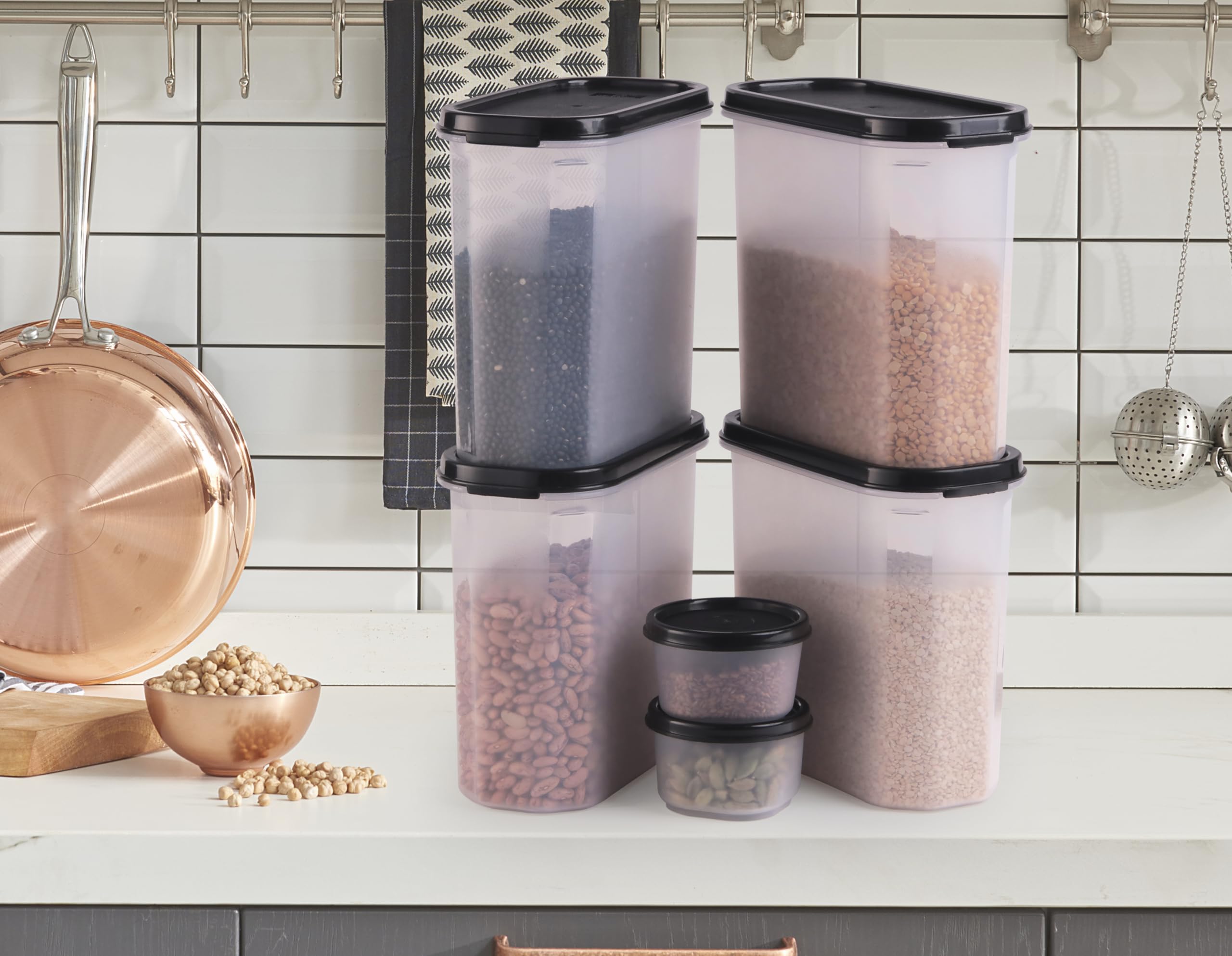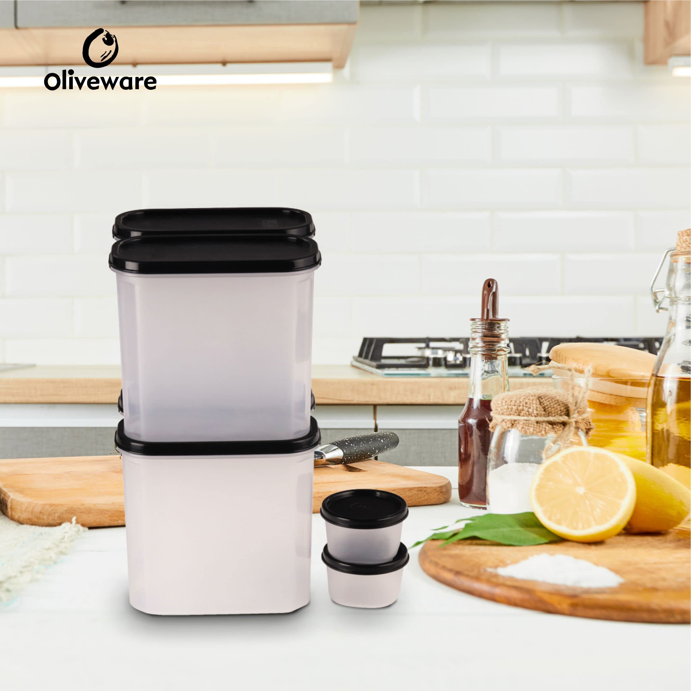 HomeKitchenContainersJars & ContainersOliveware Modular Storage Containers BPA Free For Pulses Rice Dal Atta & Flour Set of 6 (4x1800ml 2x180ml) - Black