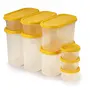 Oliveware Modular Storage Containers | Organised Kitchen | Stackable | Durable | For Pulses Rice Dal Atta Flour Cereals Snacks | Set of 9 - 2x1800ml + 2x1200ml + 2x600ml + 3x180ml (Yellow)