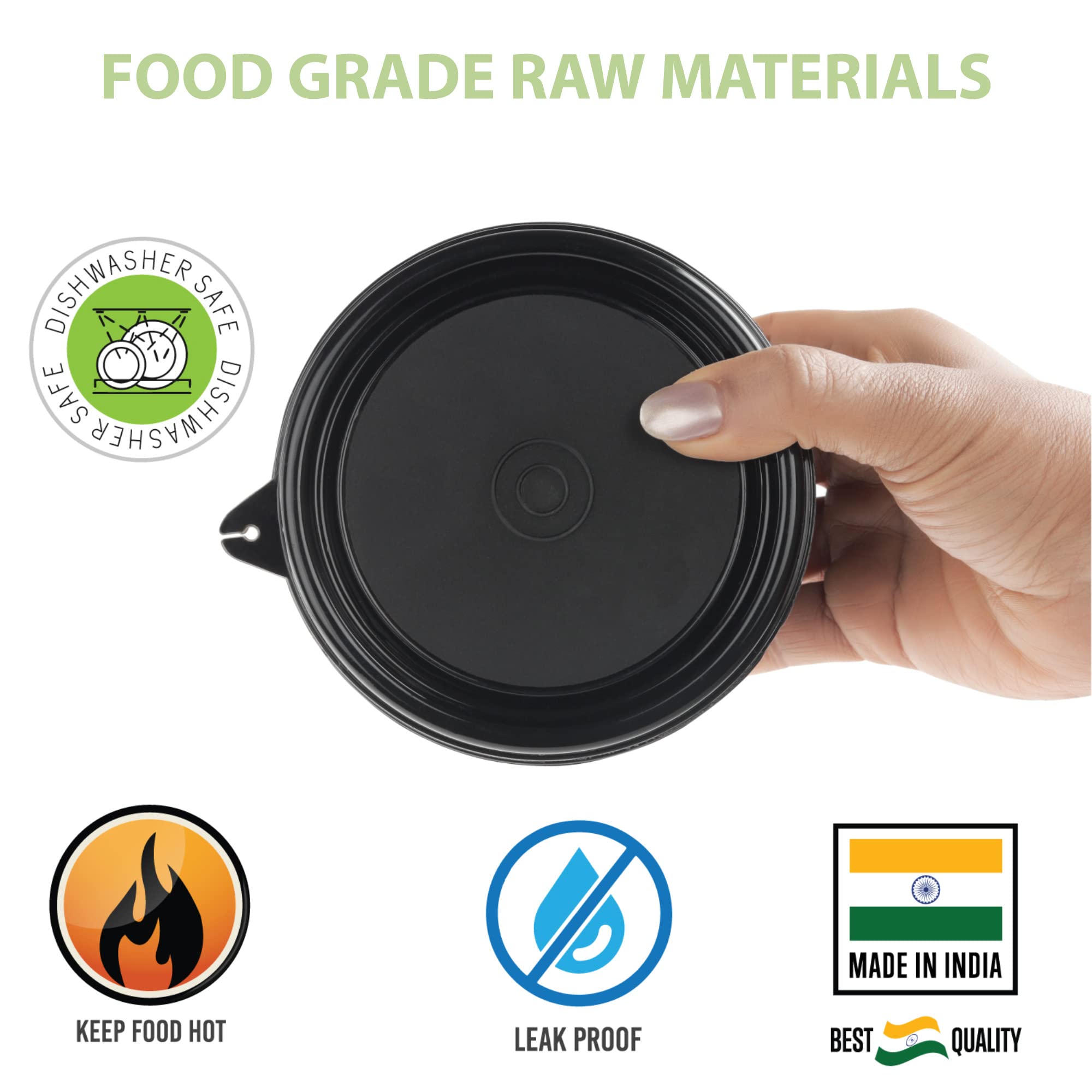 oliveware SOPL (Logo) with Device Benny Containers with BPA Free Airtight Lid Inside Steel Container Microwave Safe & Leak Proof Home & Office Use Set of 2 (450ml) - Black