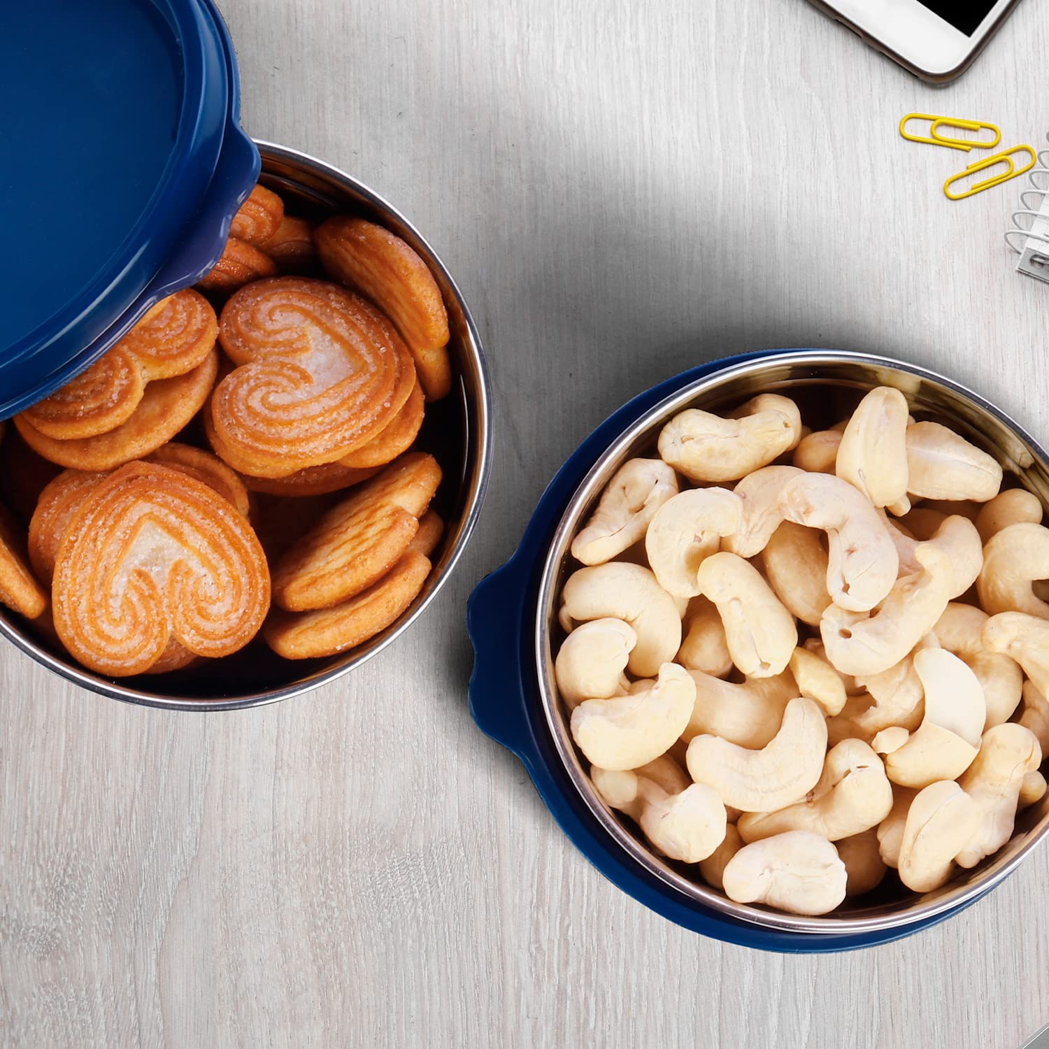 oliveware with Device Elegant Storage Containers 100% Leak Proof & Spill Proof 2 Stainless Steel Containers with BPA free Airtight Lid (250 ml Each) - Blue