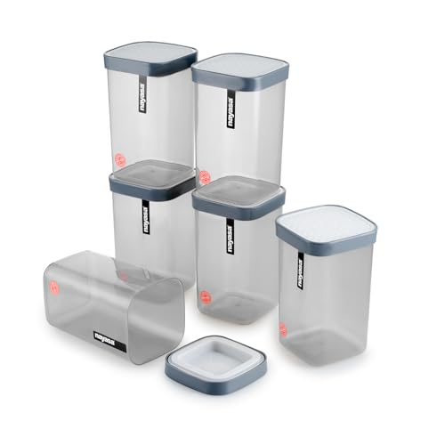 Nayasa Fusion 1.5 Litres BPA Free Food Grade Airtight Kitchen Storage Stackable Containers - Set of 6 | Grey