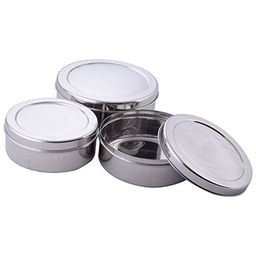This round container set of 3 piece has made out of best stainless steel i.e. Salem foodgrade stainless steel 22 gauge. This is ideal for every kitchen and gifting. This utensils is dishwasher safe. This comes with a attractive box packing. Fine Finished edges.This also comfortable to lift & evershine like mirror.