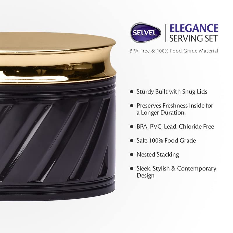 HomeKitchenContainersJars & ContainersSelvel Unbreakable & Air Tight Dry Fruit Container Tray Set with Lid & Serving Tray Airtight Container Set 430ml (4 Pieces Polypropylene) (Elegance Black)