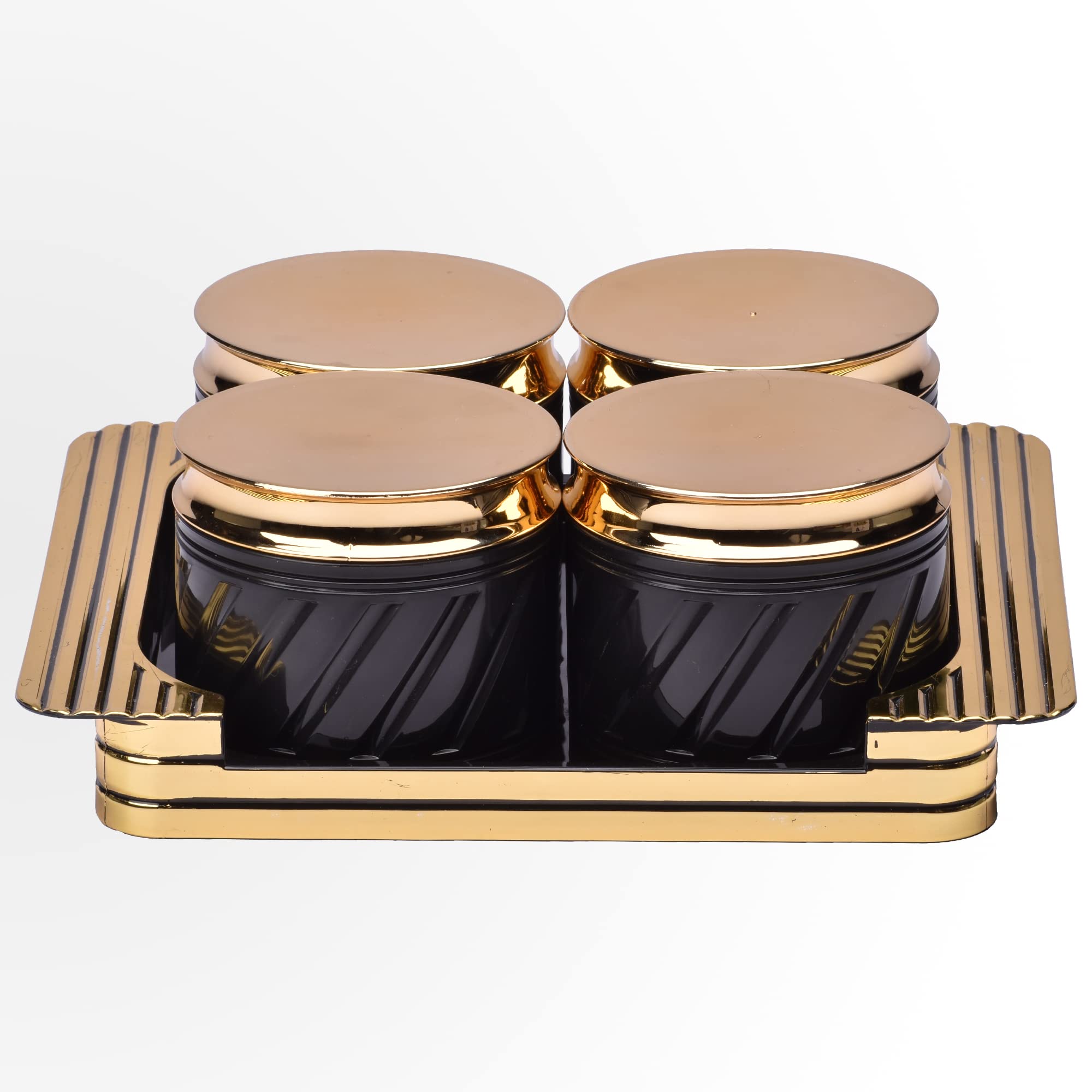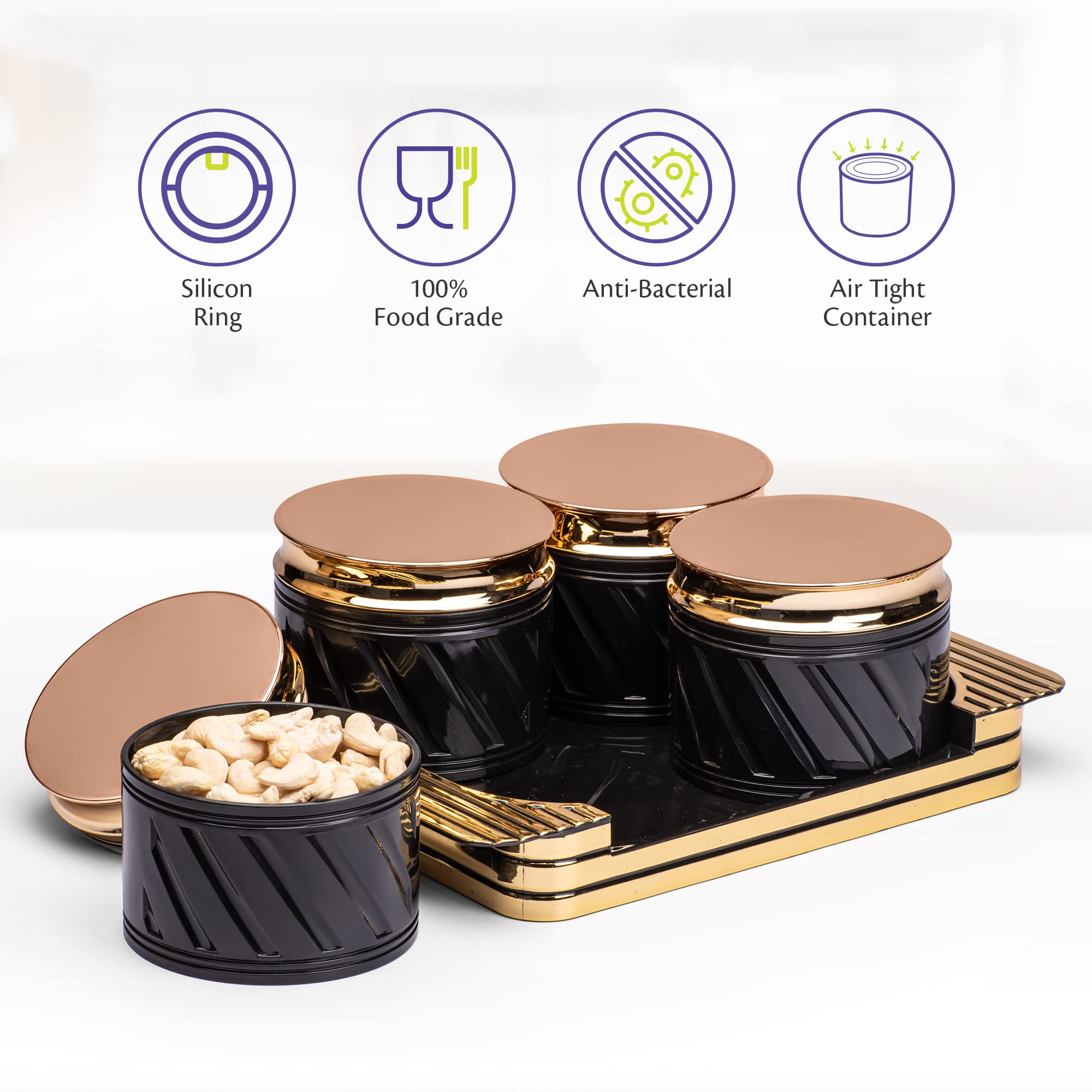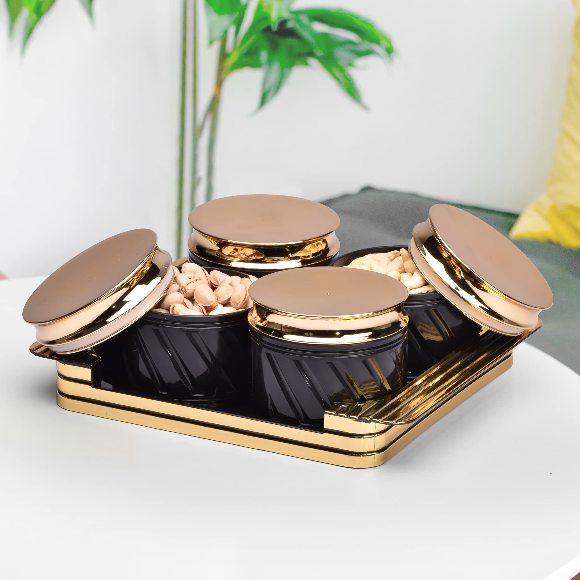 Selvel Unbreakable & Air Tight Dry Fruit Container Tray Set with Lid & Serving Tray Airtight Container Set 430ml (4 Pieces Polypropylene) (Elegance Black)