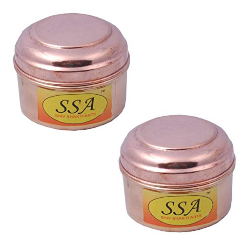 SHIV SHAKTI ARTS Handmade Set Of 2 Pure Copper Box No 2 For Storage Purpose
