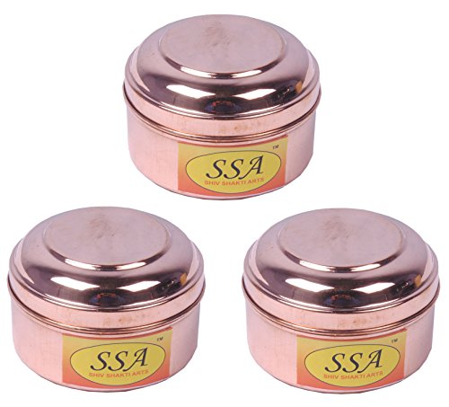 SHIV SHAKTI ARTS Handmade Set Of 3 Pure Copper Box No 3 For Storage Purpose