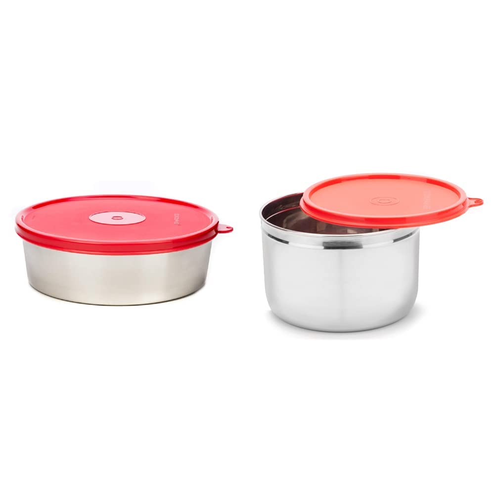 Signoraware Classic Stainless Steel Container 900 ml Red & Store Well Steel Container 1.1ltr 1pc Red Combo