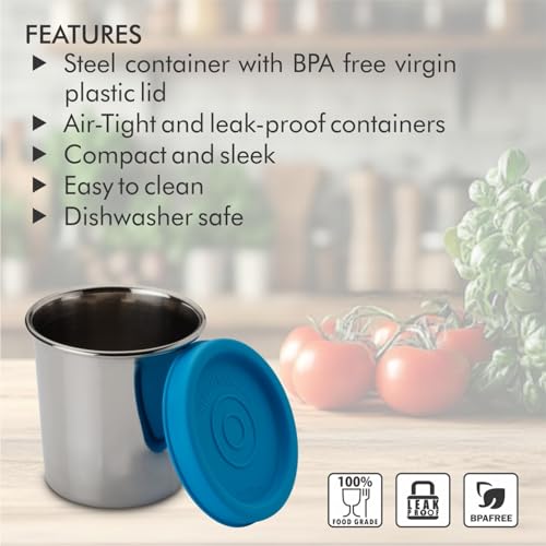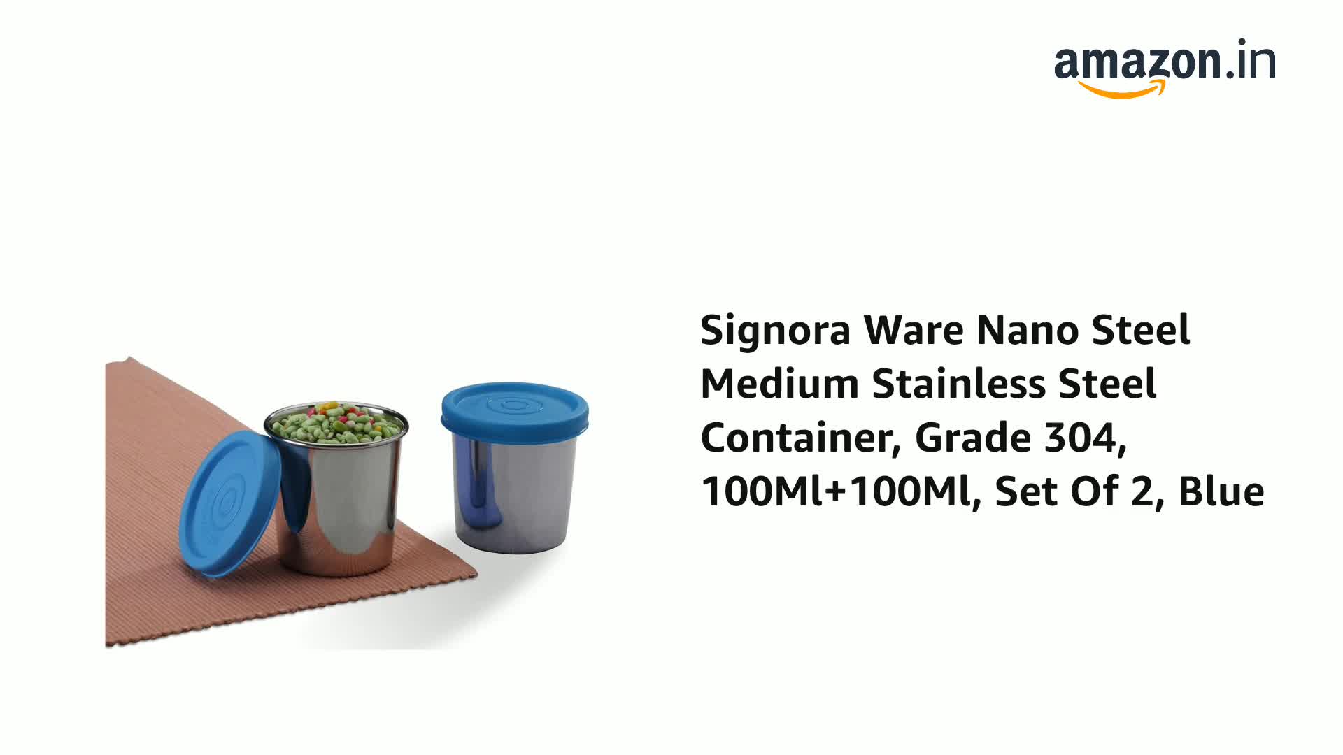 Signoraware Nano Steel Medium Stainless Steel Container Grade 304 100ml+100ml Set of 2 Blue