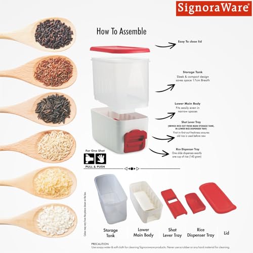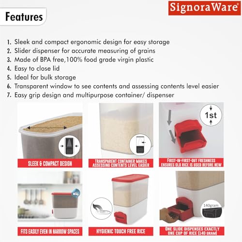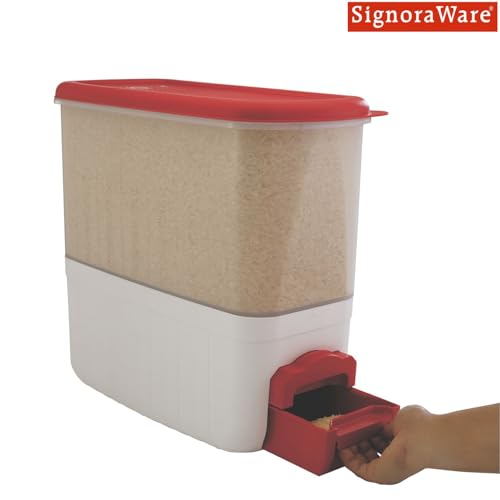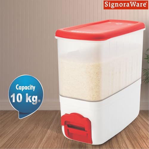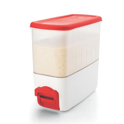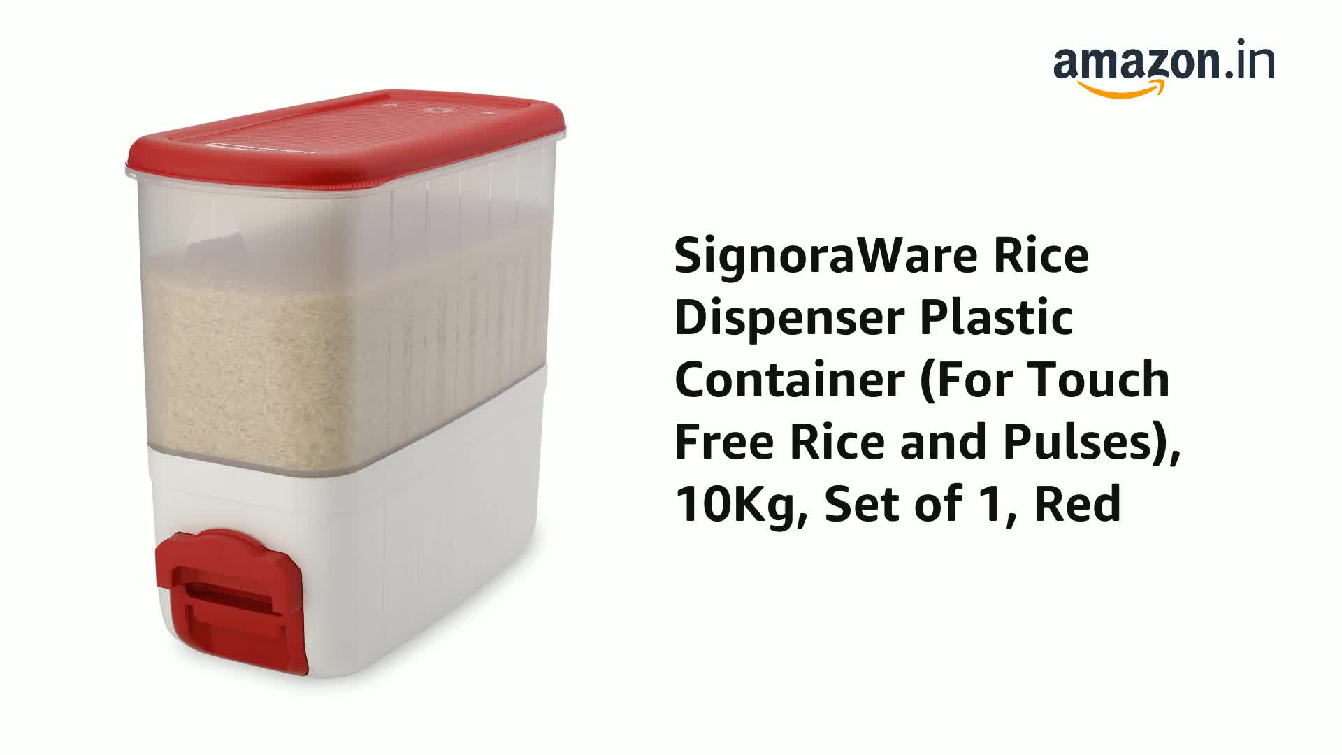 Package Contents : Rice Dispenser Plastic Container (For Touch Free Rice and Pulses) 10Kg Set of 1 Red