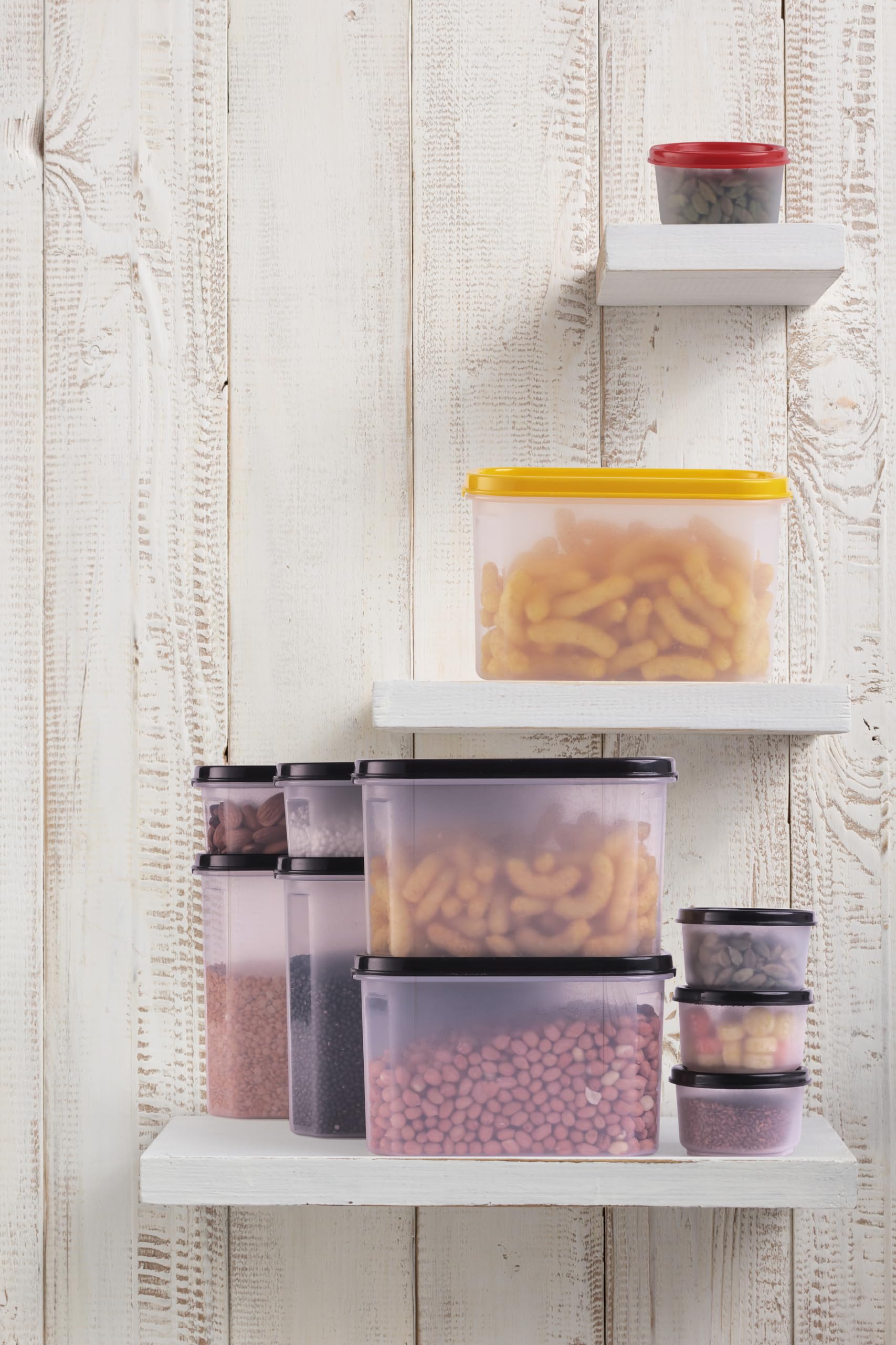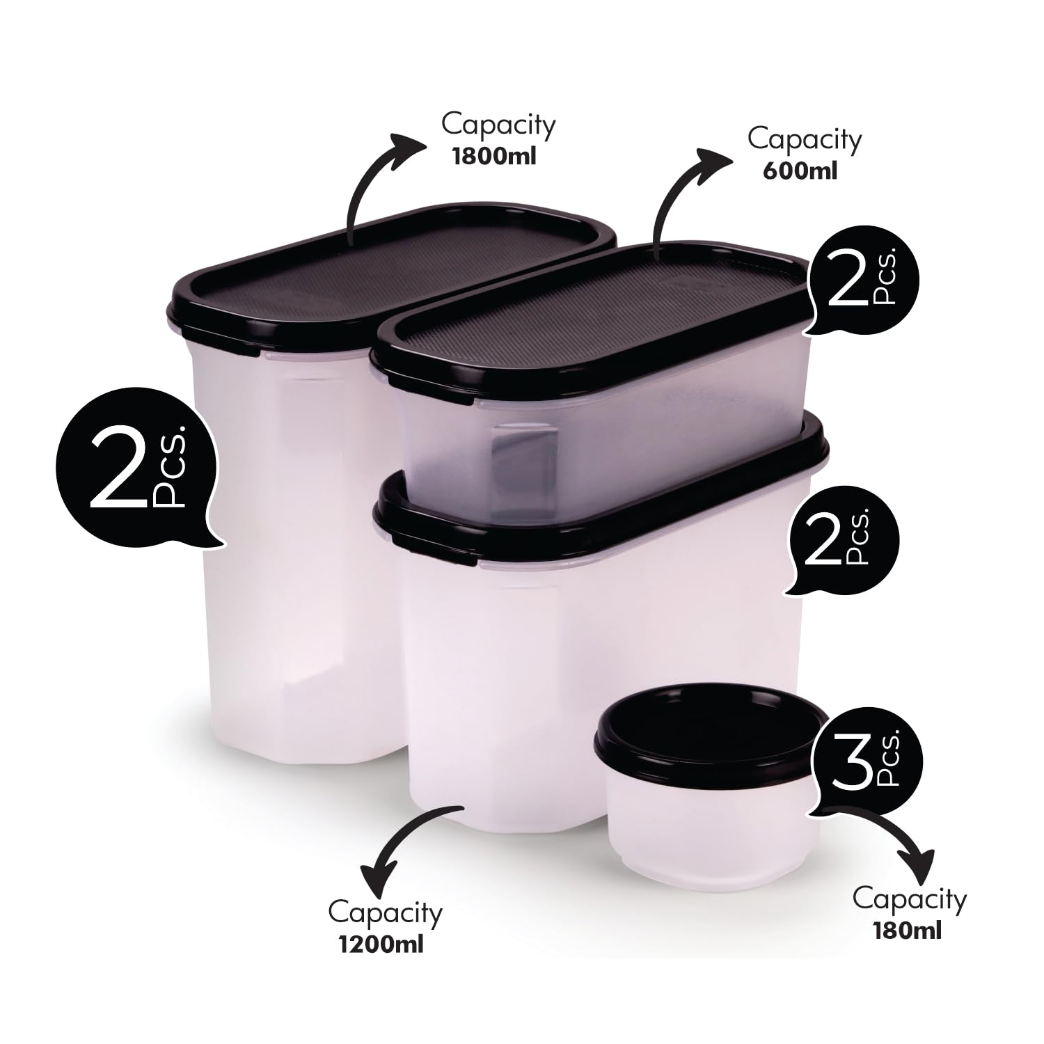 HomeKitchenContainersJars & ContainersSOPL-OLIVEWARE Modular Storage Containers BPA Free For Pulses Dal Atta & Flour Set of 9 (2x1800ml 2x1200ml 2x600ml 3x180ml) - Black