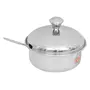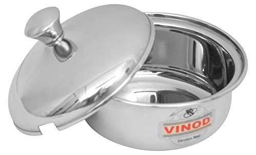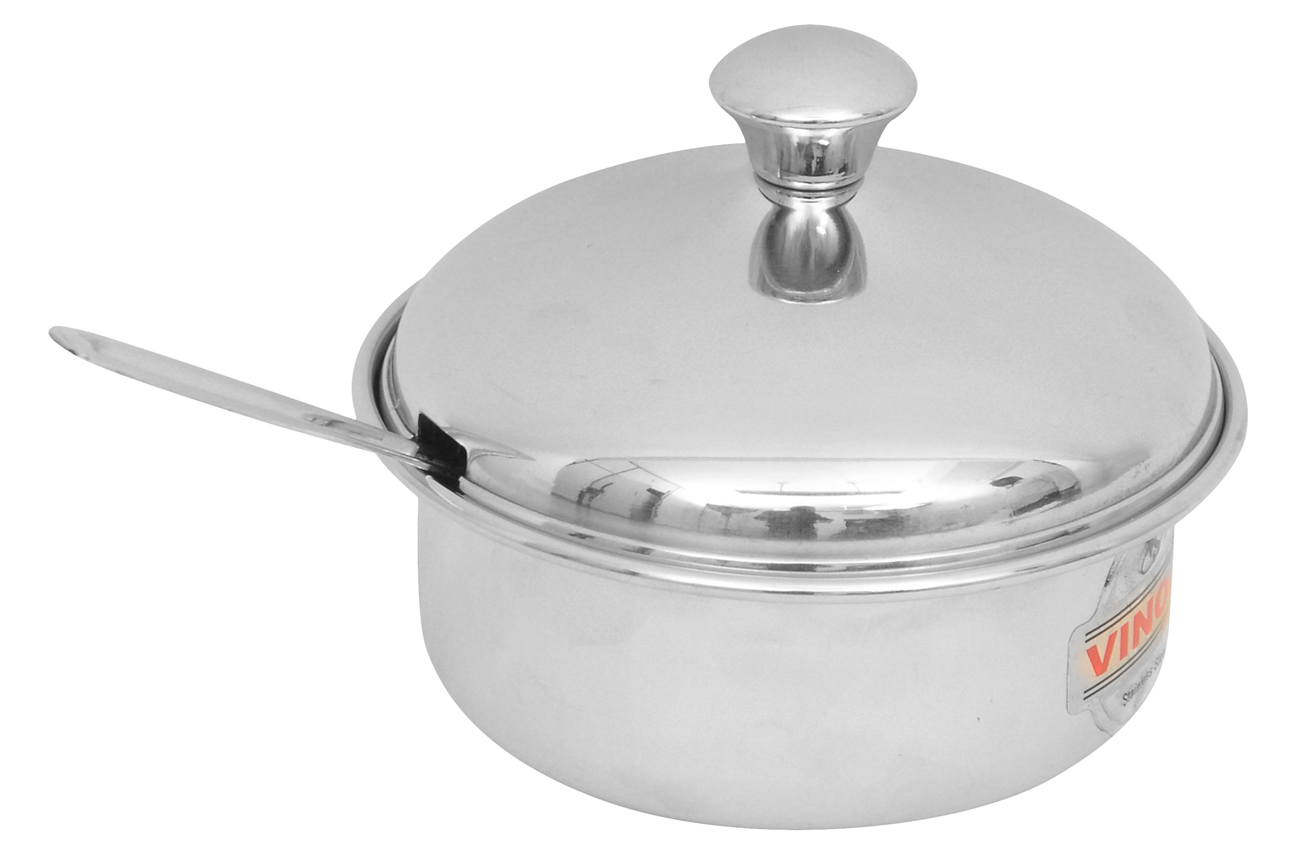 Vinod presents this silver color butter pot with lid and spoon. It is made of stainless steel. This package contains 1 butter pot with lid and spoon. It has seller warranty up to 10 years and the replacement warranty is available against manufacturing defects only.