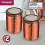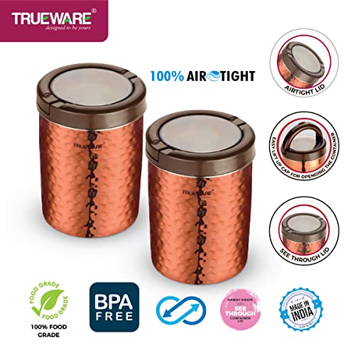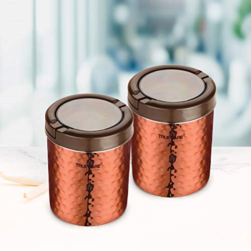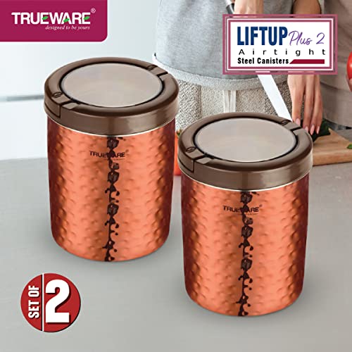 Trueware Airtight Iift up Plus Canister Set of 2 is made of superior quality of stainless steel . It has wide mouth for pouring in & out dry fruits sweets cookies chocolates candies and other dry snacks etc. It has transparent lid made up with polycarbonate material with chrome coated lift up handle to easily open the canister. It has Silicon ring which ensures airtight container and keep the content moisture free. Handy shape Canister with transparent lid that ensures you can see through inside easily. It is suitable for any kind of table and has a hammer lacquer finish. This set gives a classy look to your kitchen. It is perfect for gifting on any occasion.