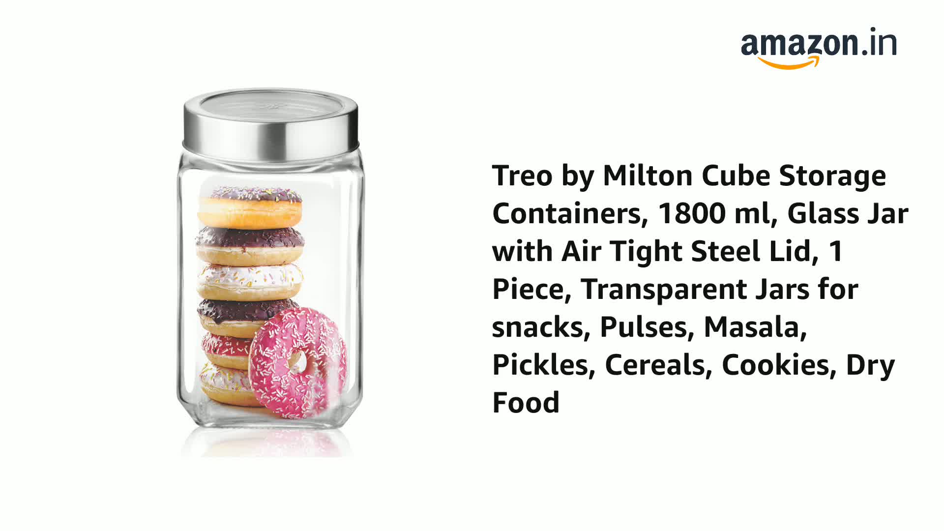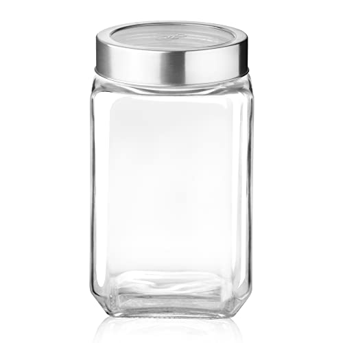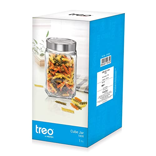 Treo by Milton Cube Storage Containers, 1800 ml, Glass Jar with Air Tight Steel Lid, 1 Piece, Transparent Jars for snacks, Pulses, Masala, Pickles, Cereals, Cookies, Dry Food