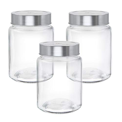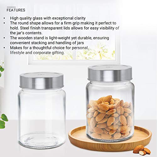 A unique jar for your kitchen it is. It is steel finish transparent lids for a see through vision of the jars contents. It is ideal for storing dry fruits cookies pasta sugar tea cereals pulses and spices.