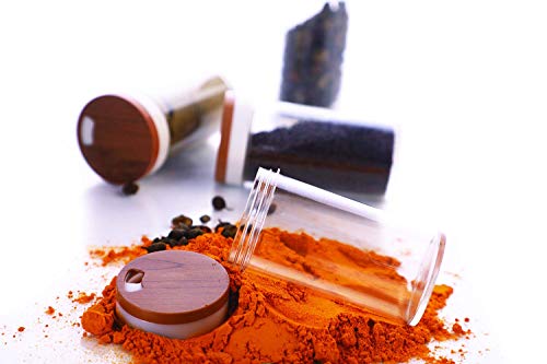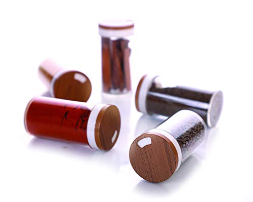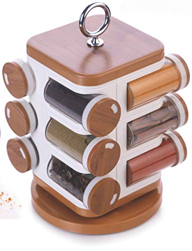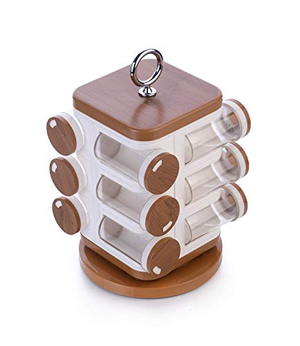 Trueware 360 Degree Revolving Spice Rack 12 in 1 Wooden Round Plastic Container|Condiment Set|100ml