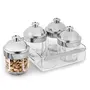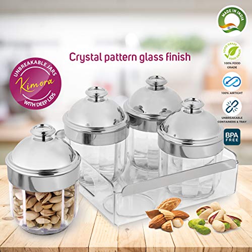 Trueware Kimora Plus Serving Set Of 4 Pcs With Tray -Silver Cyrstal Cut Pattern Plastic Dry Fruit Jars 500ml Each Unbreakable Container