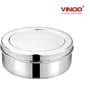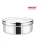 Vinod Stainless Steel Puri Paratha and Papad Container made from the finest stainless steel material which ensures strength quality and durability. This attractive mirror finishes flat canister can be used to store puris rotis parathas papad snacks khakhra mukhwas dry fruits chocolates biscuits.