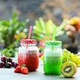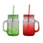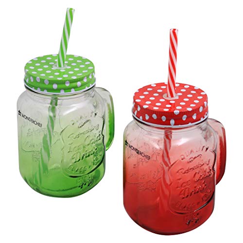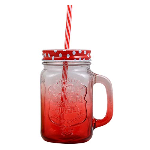 Color Name:Red and GreenPerfect serving jars for blended drinks smoothies and other beverages serve classic cocktails homemade lemonade or a summer punch made of new glass and includes lids and straws jar glasses feature the classic screw top design and a convenient handle ensuring a ï¬rm grip easy to clean and maintain great gifts for friends and family capacity - 450 ml.