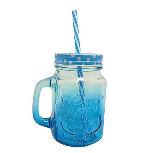 Set of 2 high quality glass Mason jar mugs with handle and screw on lids and includes reusable BPA free straws