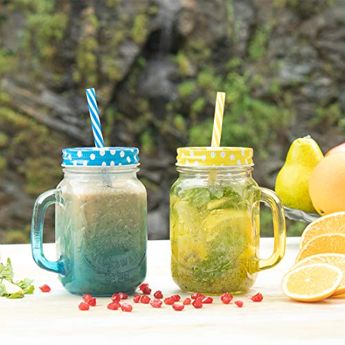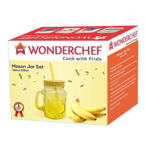 Wonderchef Mason Glass Jar Set, 450ml, Yellow and Blue