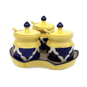 KHURJA POTTERY Blue & Yellow Ceramic...