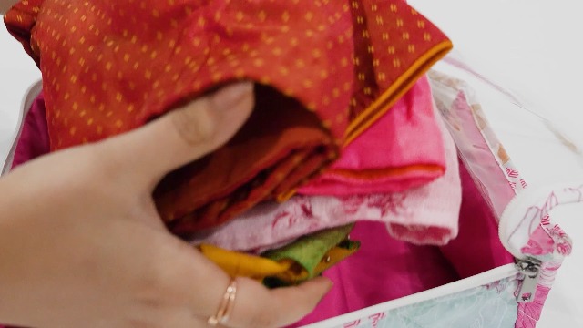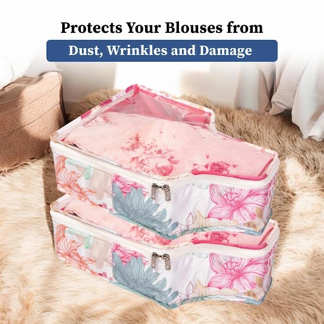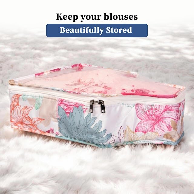 SMART STORAGE FOR DELICATE BLOUSES: Tailored for blouses this cover measures L 28 x W 36 x H 10 cm keeping your silk embroidered and padded designer blouses safe from dust moisture and wrinkles. Designed to hold up to 6â8 blouses Its compact size makes