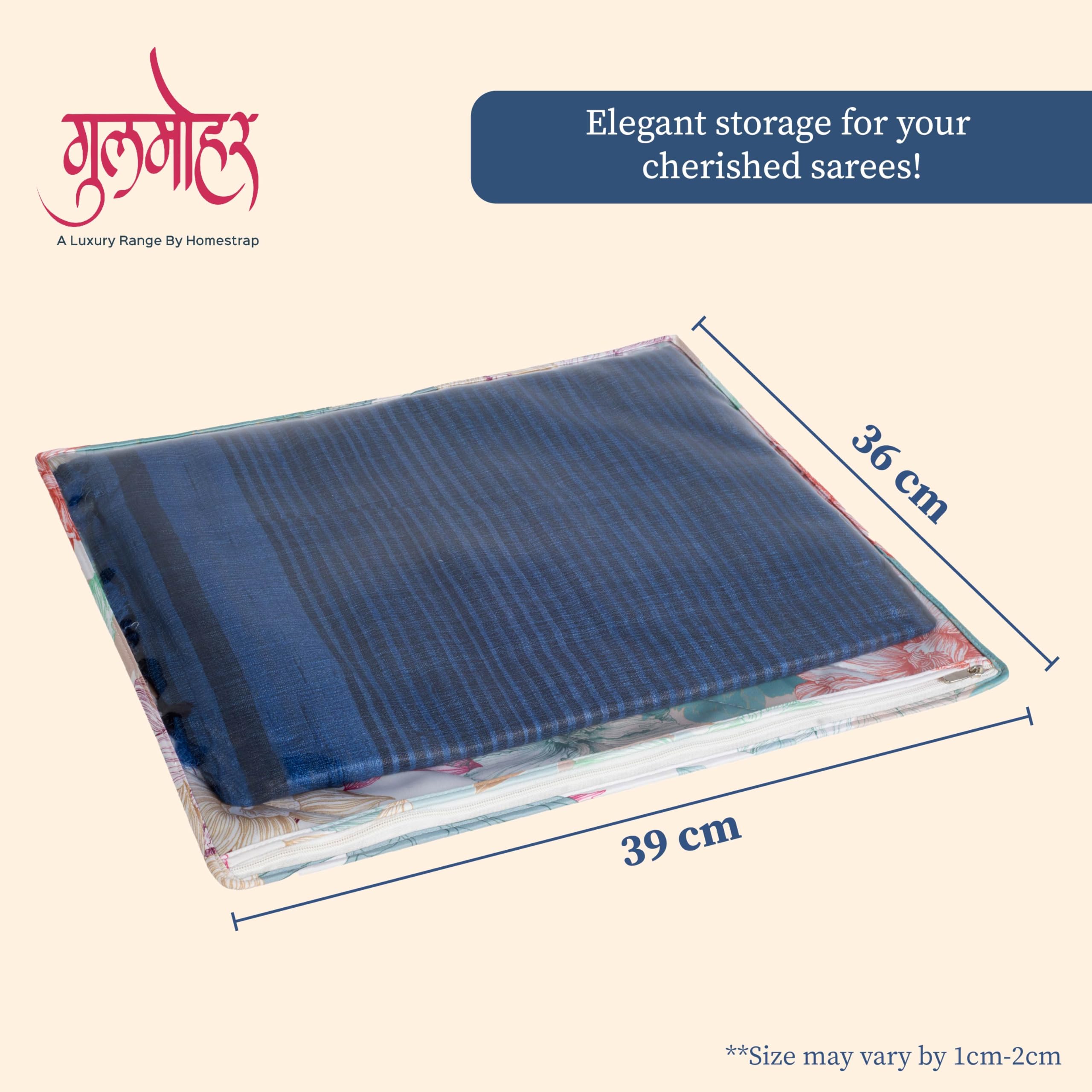 Explore the vibrant essence of Homestrap's "Gulmohar - Organize in Full Bloom" collection a luxury range by Homestrap. Made from premium fabric with 50mm PVC these clothes covers organizer offer durability and protection for your clothes storage. Featuring a stunning design they are ideal for storing sarees lehengas dresses shirts trousers and gowns. With strong stitching and smooth zippers guaranteed for 1000 pulls they provide a practical and stylish storage solution. Perfect for gifting and traveling on occasions like Mother's Day Valentine's Day weddings and anniversaries these versatile covers bags keep your clothes organized and protected anywhere you go. Trusted by millions Homestrap ensures superior organization and protection for your clothing and belongings.