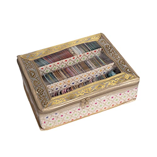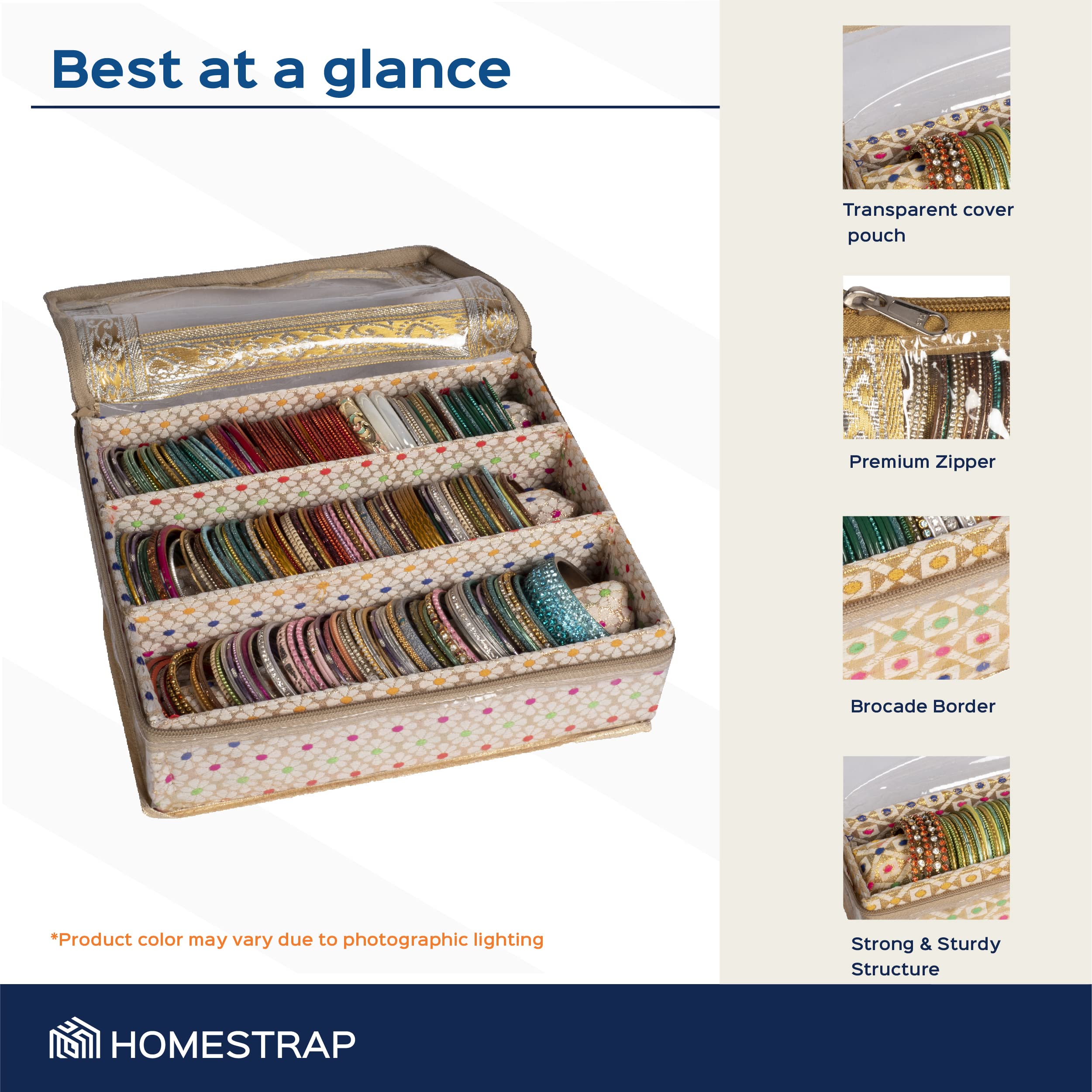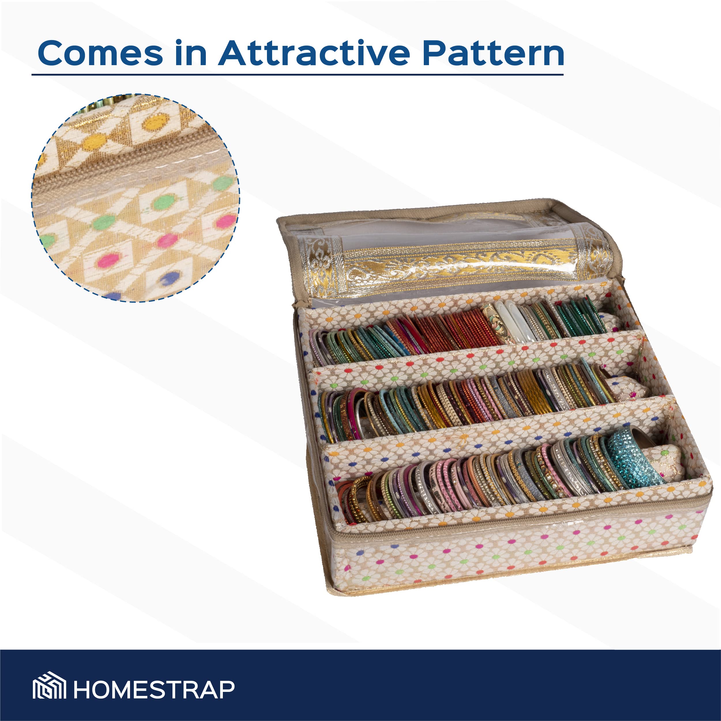 HomeKitchenContainersProduce Storage BagsHomeStrap 3 Rod Brocade Stylish Design women Bangle Storage Box/Chudi Set Organizer with transparent top for bangles jewellery bridal bracelets (Golden)(Shark Tank Product)