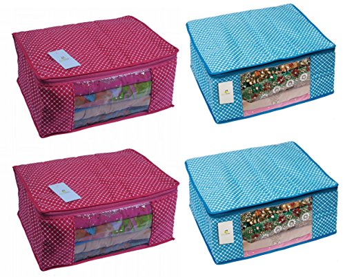 Colour: Pink & Blue ; Package Content: Pack of 4 Large Saree Cover