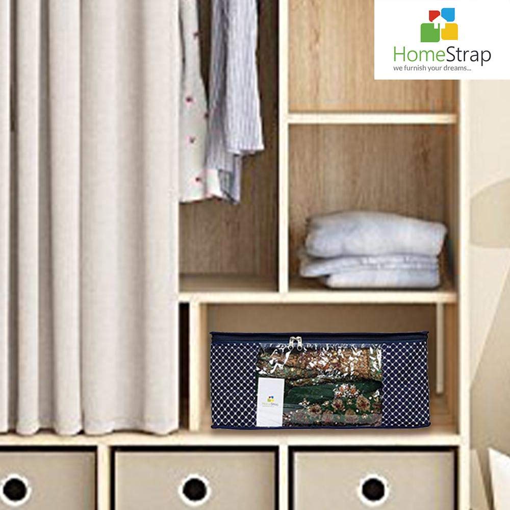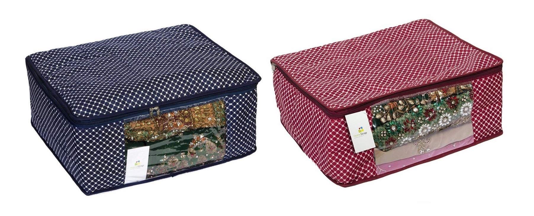 Homestrap Cotton Quilted Large Saree Cover/Wardrobe Organiser - Navy Blue & Maroon - Pack of 2