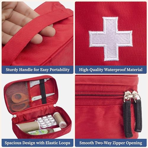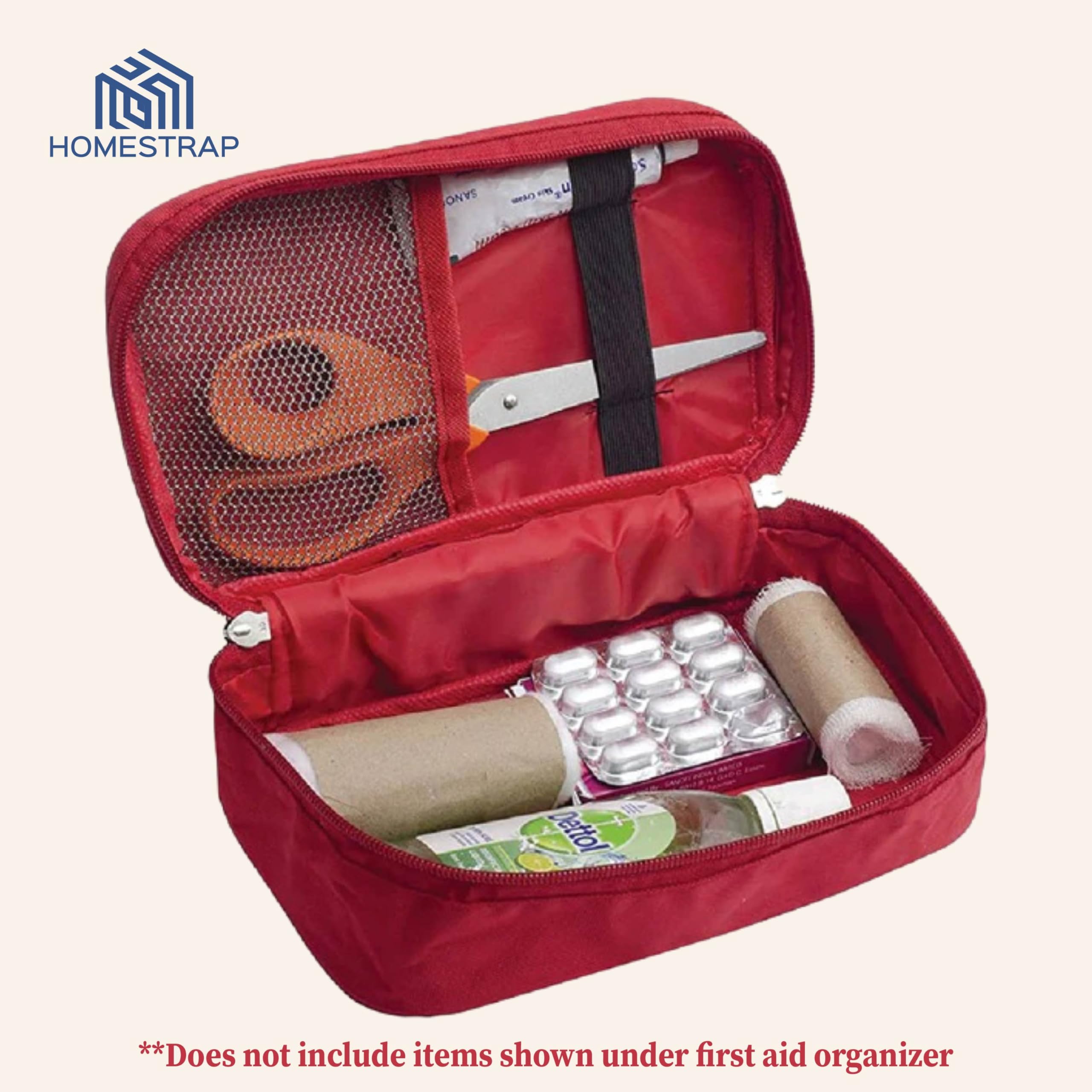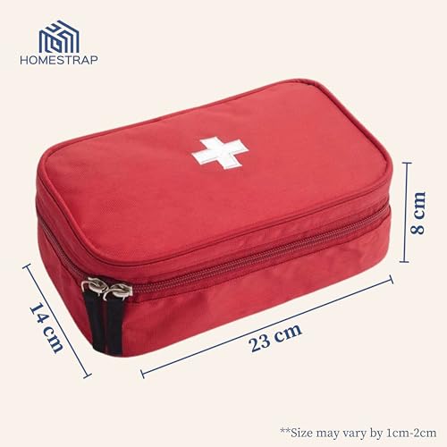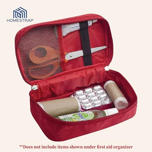 HomeStrap First Aid Kit Bag | Medicine Storage Box | Multi-Utility With Handle | Portable & Spacious Emergency Kit Organizer With Mesh Pouch & Elastic Loops | Perfect For Travel Camping Home red