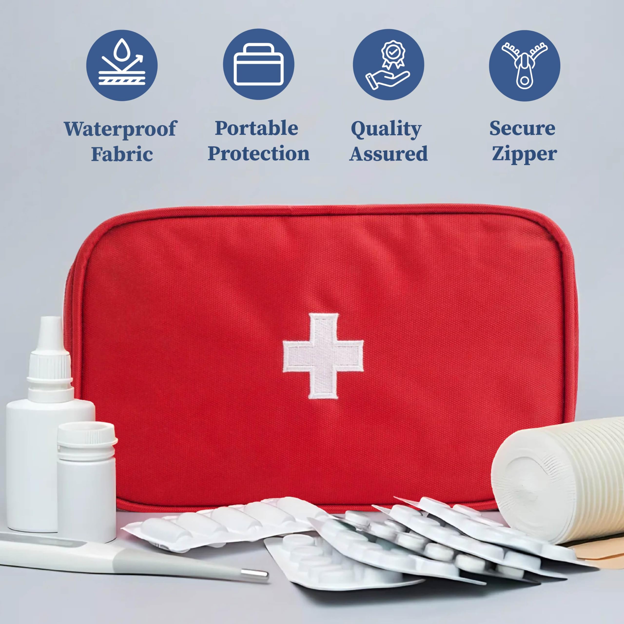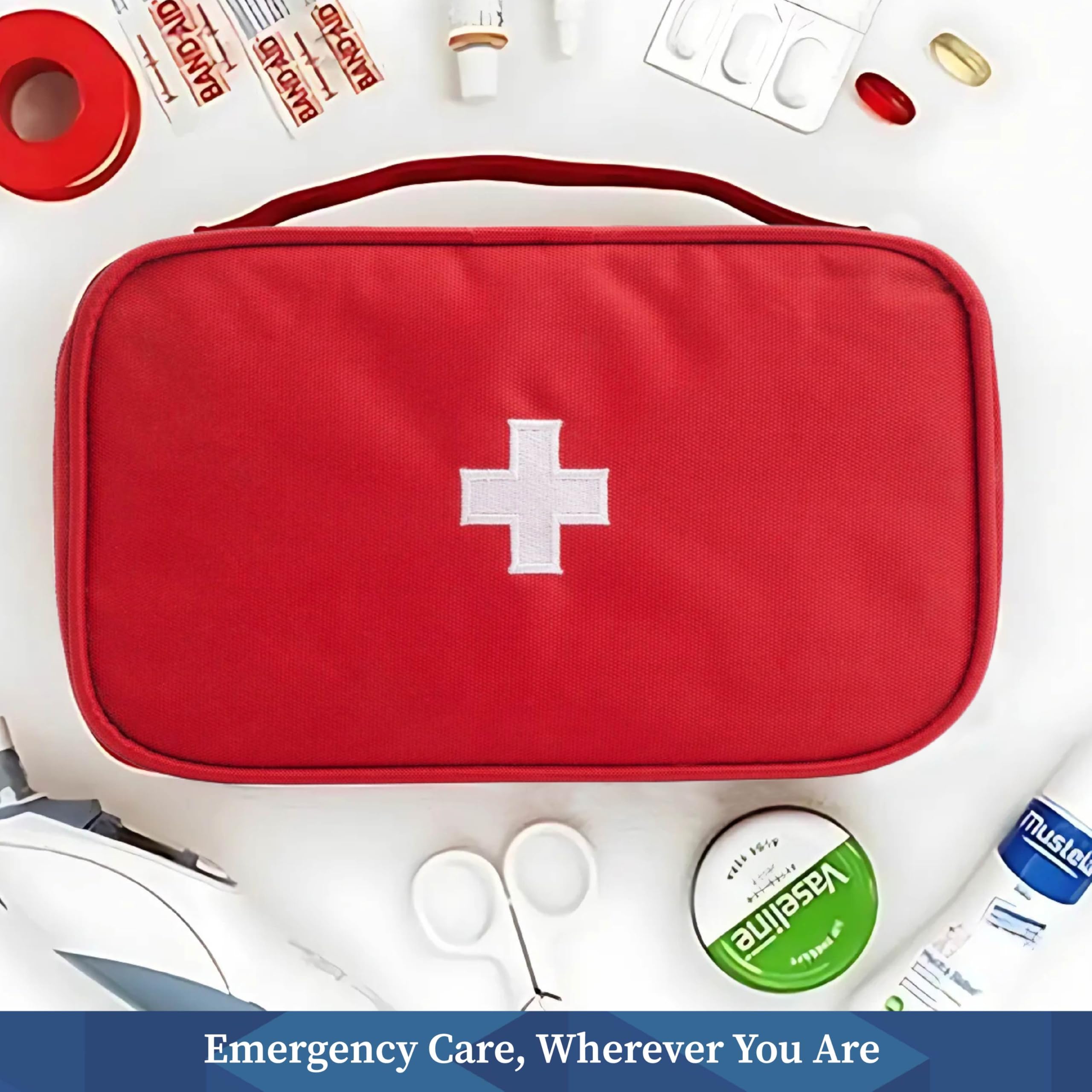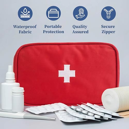 HomeKitchenContainersProduce Storage BagsHomeStrap First Aid Kit Bag | Medicine Storage Box | Multi-Utility With Handle | Portable & Spacious Emergency Kit Organizer With Mesh Pouch & Elastic Loops | Perfect For Travel Camping Home red